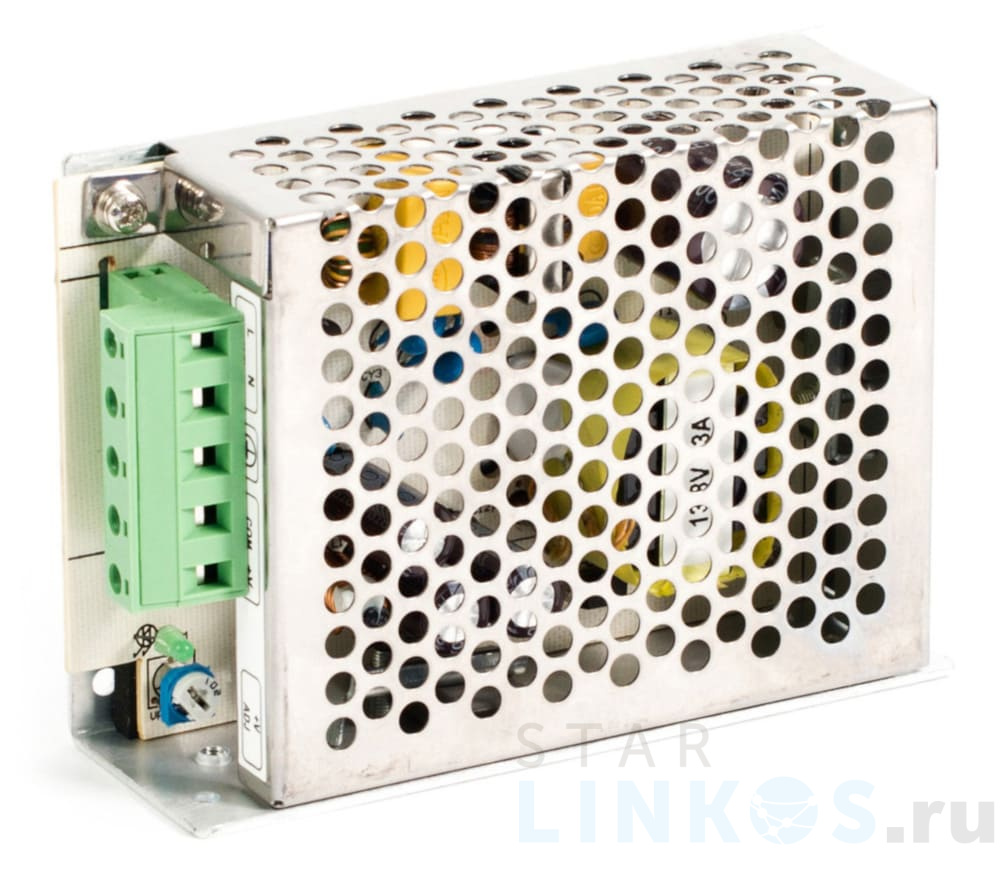 Блок питания «Бастион «Моллюск» 12/5 IP20 DIN, выполненный в перфорированном корпусе, рассчитан на потребителей постоянного тока с номинальным напряжением 12 В. Обеспечивает защиту от перегрузки и короткого замыкания на выходе. Характеристики: Диапазон напряжений на входе — 100 В ~ 240 В AC. Напряжение на выходе — 13.8 В DC. Регулирование выходного напряжения в пределах ±5 %. Максимальный ток нагрузки — 5 А. Максимальное напряжение без пробоя изоляции — 1.5 кВ. «Моллюск» 12/5 IP20 DIN оснащен съемной клеммной колодкой для сети и выхода, LED-индикатором выхода. Предусмотрен настенный, потолочный монтаж или крепление на DIN-рейку в шкафу (в комплект входит DIN-рейка с крепежом). Рабочие температуры — +5 ºС… +40 ºС. Защита от пыли и влаги — IP20. Размер — 160×96×37 мм, вес — 366 г.