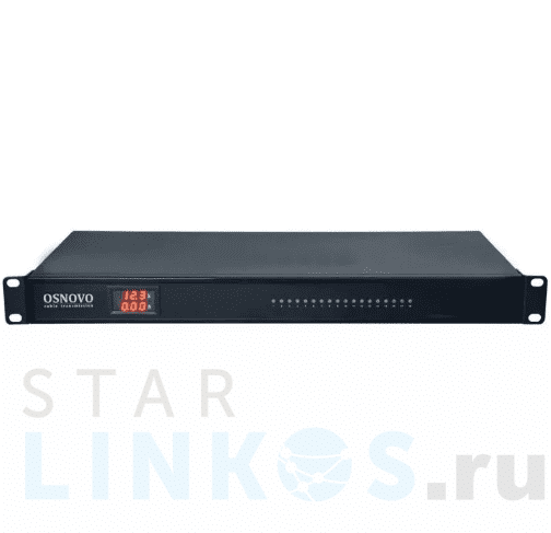 Блок питания Osnovo PS18-12240/R оборудован LED-экраном для визуального контроля за напряжением и силой тока всех каналов. Характеристики: Количество каналов питания — 18. Регулировка выходного напряжения на всех каналах — плавная, от 10 В до 14 В. Выходной ток на канал: номинальный — 1.11 А, максимальный — 2 А (при одновременной работе до 10 каналов). Суммарный максимальный ток — 20 А. Предельная суммарная выходная мощность — до 240 Вт. Защита от короткого замыкания — в цепи AC 220 В, на выходах питания. Защита от перенапряжения. Защита от перегрузок по току на каждом канале (при 4 А в течение 5 с.). Защита от перегрева: автоматическое отключение при 90 ºС, автоматическое включение при возврате к 75 ºС. PS18-12240/R оснащен переключателем сетевого напряжения, разъемом C14 и кабелем С13 (евровилка), шестью клеммными колодками под винт 6pin, винтовой клеммой заземления корпуса, разъемом для плавкой вставки-предохранителя, LED-индикаторами работы каналов. Предусмотрено активное охлаждение, установка в 19'' телекоммуникационную стойку или на стол (набор крепежных элементов и резиновые ножки в комплекте). Рабочие температуры — –20 °C… +40 °C. Размер — 440×45×210 мм. Запрещено одновременное подключение одного устройства к двум каналам для удвоения выходной мощности.