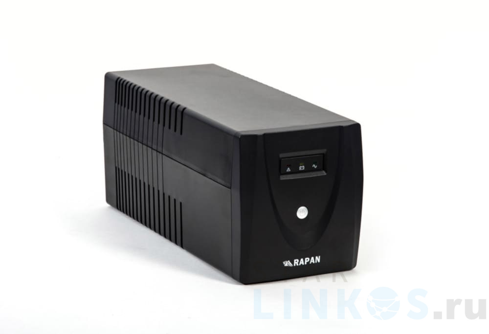 Интерактивный ИБП «Бастион» Rapan-UPS 1000 рассчитан на четыре устройства, подключенные через два компьютерных разъема IEC 320 C13 и две розетки с заземлением CEE 7/4. Выдает на выходе напряжение в форме аппроксимированной синусоиды. Полная мощность — 1000 ВА, активная мощность — 600 Вт. Функциональность: Режим питания от сети: ИБП не переходит на резервное питание в границах сетевого напряжения от 170 В до 270 В — поддерживает на выходе 220 В ±10 % за счет стабилизации (AVR). Автономный режим: при перепадах напряжения и его отсутствии переходит на резервное питание. Автоматическое возобновление питания от сети при нормализации сетевого напряжения. Холодный старт — подача питания на подключенное устройство исключительно за счет заряда батареи. Фильтрация помех. Защита от короткого замыкания, перегрузки, высоковольтных импульсов, глубокой разрядки батарей, перезаряда батарей. Резервное питание к потребителям подают две необслуживаемые свинцово-кислотные батареи емкостью 7 А·ч. Напряжение батарей — 12 В. Подзарядка батареи до 90 % емкости длится 6 ~ 8 ч. Время автономной работы: До 2.5 мин. при полной нагрузке. 12 мин при 400 ВА. 6 мин. при 700 ВА. 2 мин. при 1000 ВА. Для контроля за режимом предусмотрена световая индикация питания от сети, питания от батарей, звуковая сигнализация перегрузки, автономного режима, низкого заряда аккумуляторов и неисправности. Входной разъем оснащен плавким предохранителем. Охлаждение — безвентиляторная конвекция. Защита от пыли и влаги — по стандарту IP20. Рабочие температуры — +5 ºС… +40 ºС. Размер — 147×160×380 мм, вес — 7.8 кг.