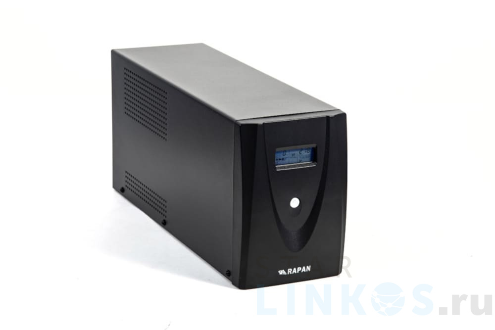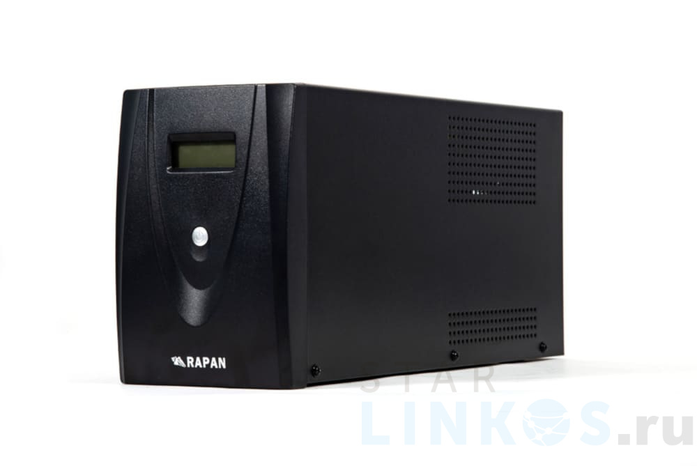 Линейно-интерактивный ИБП «Бастион» Rapan-UPS 3000 на четыре потребителя оборудован двумя IEC 320 C13 (компьютерные разъемы) и двумя CEE 7/4 (розетки с заземлением). Номинальная мощность — 3000 ВА. Максимальная мощность нагрузки — 1800 Вт. Источник стабилизирует (AVR) выходное напряжение до 220 В ±10 % и формирует электрический сигнал в виде модифицированной синусоиды при сетевом напряжении в диапазоне 162 В ~ 290 В. Функциональность: Автоматическое переключение в автономный режим при утрате сетевого питания или скачках напряжения. Автоматическое переключение в основной режим после восстановления сетевого питания. Холодный старт — включение источника и питание устройств на аккумулированном заряде батарей. Защита от перегрузки, перенапряжения, короткого замыкания. Фильтрация помех. Защита от перезаряда и глубокой разрядки АКБ. Вентиляторное охлаждение. Источник резервного питания — четыре необслуживаемые герметичные свинцово-кислотные батареи 12 В емкостью 7.2 А·ч. ИБП поддерживает переключение в автономный режим за 8 ~ 10 мс. Время восстановления заряда батарей до 90 % — 6 ~ 8 ч. Длительность автономного режима при нагрузке: 500 ВА — 20 мин. 1000 ВА — 10 мин. 1500 ВА — 6 мин. 2000 ВА — 4 мин. 2500 ВА — 2 мин. 3000 ВА — 1.5 мин. Rapan-UPS 3000 оснащен ЖК-дисплеем для отображения значений входного и выходного напряжения, уровня заряда АКБ, уровня нагрузки, пиктограмм работы в основном и автономном режиме, перегрузки, низкого уровня заряда АКБ и неисправности. Предусмотрена звуковая индикация автономного режима, низкого уровня заряда батарей, перегрузки и неисправности. Защита от влаги и пыли — IP20. Рабочие температуры — +5 ºС… +40 ºС. Размер — 145×213×436 мм. Вес — 23 кг.