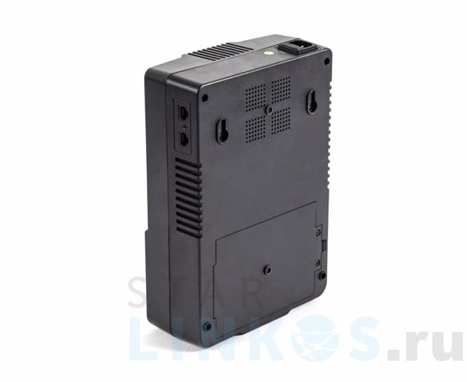 Линейно-интерактивный ИБП «Бастион» Skat-UPS 800 AI рассчитан на шесть потребителей с подключением через три розетки с заземлением CEE 7/4 с поддержкой питания от АКБ и три — без поддержки. Выдает на выходе сигнал в виде аппроксимированной синусоиды. Номинальная мощность — 800 ВА. Активная мощность — 480 Вт. Функциональность: Электронная стабилизация выходного напряжения (AVR) до 220 В ±10 % в основном режиме при сетевом напряжении 170 В ~ 270 В. Автоматическое переключение в режим батарейной поддержки при отсутствии сетевого напряжения или скачках. Автоматический переход в режим питания от сети после восстановления напряжения . Холодный старт — включение и питание устройств от заряда батареи. Зарядка мобильных устройств от встроенного зарядного устройства (USB). Мониторинг состояния источника в реальном времени. Корректное завершение работы IТ-систем с переподключением к сети после восстановления питания (через ПО). Защита от перегрузки, перенапряжения, высоковольтных импульсов, короткого замыкания, перезаряда АКБ, помех в линиях передачи данных. Защита локальных сетей стандарта 10 Base-T. Источник автономного питания — необслуживаемая свинцово-кислотная АКБ с номинальным напряжением 12 В и емкостью 9 А·ч. Поддерживает работу устройств до 12 мин. при нагрузке 250 ВА, до 6 мин. — при 500 ВА, до 2 мин. — при 800 ВА. ИБП переходит в режим батарейной поддержки за 2 ~ 6 мс. Время зарядки аккумуляторов от 0 % до 90 % емкости — 6 ~ 8 ч. Skat-UPS 800 AI оснащен входным разъемом с плавким предохранителем, двумя сетевыми портами RJ-45, USB-портом, световой и звуковой индикацией работы ИБП. Рабочие температуры — +5 ºС… +40 ºС. Защита от пыли и влаги — IP20. Размер — 200×290×93 мм, вес — 5.3 кг. Комплектация: ИБП Skat-UPS 800 AI. Кабель USB. Кабель RJ-45. Сетевой кабель. Руководство по эксплуатации. Карта установки ПО. Упаковка.