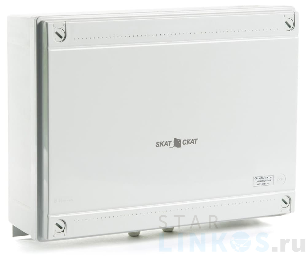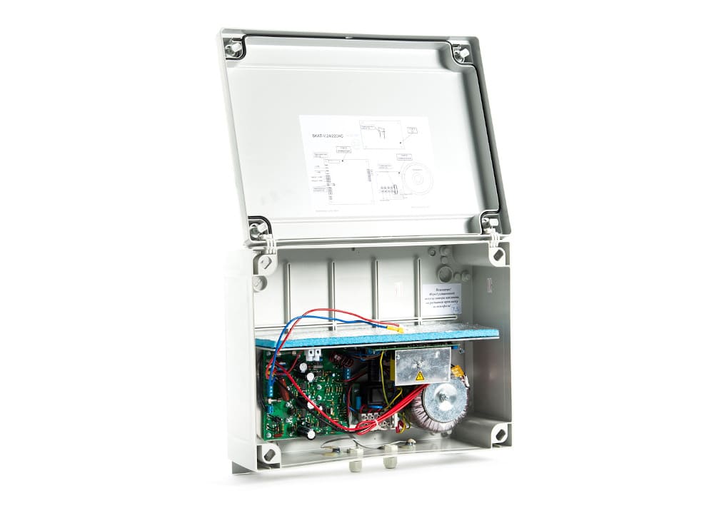 ИБП «Бастион» Skat-V.24/220AC рассчитан на эксплуатацию в сложных климатических условиях: защита корпуса от пыли и влаги соответствует стандарту IP56, рабочие температуры — –40 °C… +40 °C. Подает питание на два выхода — с напряжением 220 В AC и 24 В AC. Суммарная мощность нагрузки выходов 24 В и 220 В: номинальная — 120 ВА, максимальная (до 30 мин.) — 150 ВА, пиковая (до 1 с.) — 200 ВА. Функциональность: Основной режим — питание от сети в диапазоне напряжений 187 В ~ 242 В. Резервный режим — питание нагрузки при обесточивании или выходе сетевого напряжения за пределы заданного интервала; время переключения в режим — не более 40 мс.; форма выходного напряжения — меандр. Питание в основном режиме нагрузки 220 В — напрямую, нагрузки 24 В — через трансформатор. Питание в резервном режиме нагрузки выхода 24 В — через инвертор (преобразователь DC батареи в AC), выхода 220 В — от инвертора через трансформатор. Извещения о переходе в резервный режим. Защита нагрузки от скачков напряжения. Защита потребителей от короткого замыкания: в основном режиме — плавким предохранителем (отключаемая), в резервном режиме — электронная, с автоматическим возобновлением работы после устранения КЗ. Заряд АКБ в основном режиме. Защита от переполюсовки АКБ (плавкий предохранитель). Защита АКБ от глубокой разрядки — отключение выходного напряжения при 20 В ~ 21 В на клеммах батареи. Извещения о снижении напряжения на клеммах АКБ ниже 22 В и аварийной ситуации. Подключение устройства обогрева АКБ. Для работы в резервном режиме нужны две свинцово-кислотные герметичные батареи 12 В (в комплект не входят). Рекомендуемая емкость АКБ — емкостью 7 А·ч ~ 12 А·ч. Skat-V.24/220AC оснащен комплектом предохранителей, LED-индикаторами сетевого и выходного напряжения. Подключения — сетевая колодка, выходные колодки, открытые коллекторы (ток до 150 мА). Потребляемая мощность без нагрузки и АКБ — до 35 ВА. Размер — 418×335×140 мм, вес — 4.95 кг. Комплектация: Вставка плавкая ВПБ6-10 2.0А 250В. Вставка плавкая ВПТ6 6.3А 250В. Вставка плавкая 15А 250В (Ø6×30). Прокладка. Перемычка АКБ. Резистор (для подключения термостата). Руководство по эксплуатации.