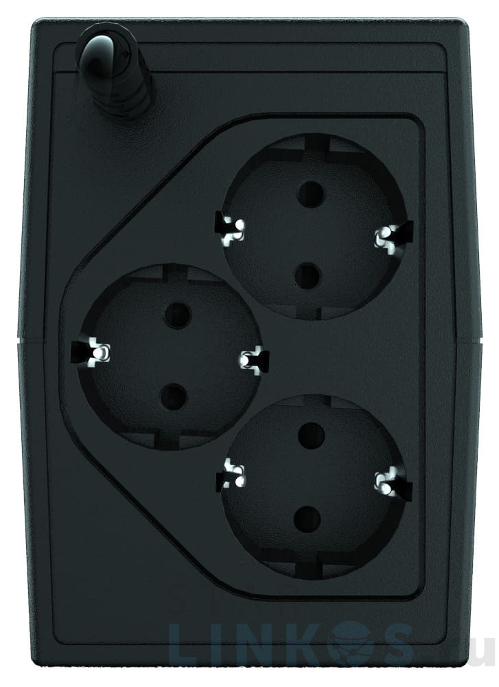 Линейно-интерактивный ИБП Ippon Back Basic 650S Euro рассчитан на три устройства с подключением через разъемы Schuko CEE 7, питанием от батарей. Максимальная нагрузка — 360 Вт. Форма сигнала на выходе — модифицированная синусоида. Фильтрация и защита UPS работает в диапазоне сетевого напряжения 162 ~ 285 В без переключения на батарейное питание. AVR стабилизирует напряжение на выходе в зависимости от значений на входе: при Uвх выше 242 В — понижает на 15 % (0.85×Uвх), при Uвх ниже 198 В — повышает на 18 % (1.18×Uвх). Функции: Защита от перегрузки в линейном режиме: при нагрузке >110 % — отключение через 5 мин., при >120 % — незамедлительно. Защита от перегрузки при работе от аккумулятора: при нагрузке >110 % — отключение через 5 с., при >120 % — незамедлительно. Защита от глубокой разрядки батареи — автоматическое отключение при нагрузке Защита от высоковольтных выбросов — соответствие испытательным уровням 2 и 3 по IEC 61000-4-5. Защита от перегрева и короткого замыкания. Холодный старт — пуск на заряде батареи. Автоматический перезапуск после восстановления питания. Функция Green Power — автоотключение при малой нагрузке в режиме работы от АКБ. Автономность Время переключения на питание от необслуживаемой герметичной свинцово-кислотной батареи емкостью 7 А·ч: стандартное — 2 ~ 6 мс, максимальное — 10 мс. Номинальная мощность ИБП — 650 ВА. Продолжительность автономной работы: ПК с 17" монитором (140 Вт) — 9.7 мин. 60 % нагрузки — 14.1 мин. 70 % нагрузки — 2 мин. Продолжительность восстановления АКБ после полной разрядки до 90 % емкости — 4 ч. Основные параметры Предусмотрены USB-порт type B, светодиодная индикация и звуковые оповещения. Уровень создаваемого шума — ниже 40 дБ. Back Basic 650S Euro соответствует стандартам безопасности и электромагнитной совместимости ЕврАзЭС. Рабочие температуры — 0 ºС… +40 ºC, степень защиты от влаги и пыли — IP20. Размер — 100×143×278 мм, вес — 4.35 кг.