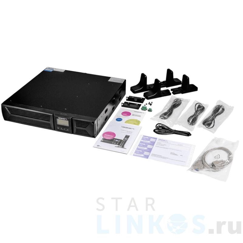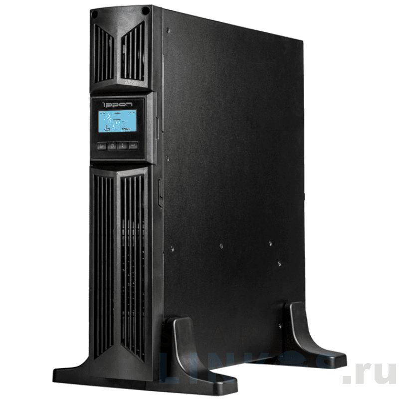 Однофазный ИБП Ippon Innova RT 1500 рассчитан на одновременное подключение до восьми устройств через разъемы IEC 320 C13 с батарейной поддержкой. Выполнен в технологии On-line, с двойным преобразованием тока, что предохраняет подключенное оборудование от нестабильности электросети: последовательная трансформация AC в DC и обратно обеспечивает чистую синусоиду на выходе. Полная мощность ИБП — 1500 ВА, активная мощность — 1350 Вт. Режимы работы UPS: Линейный (питание от сети или генератора). Питание от батарей. Bypass. ECO — экономичный. Нагрузка отключена. EPO — аварийное отключение питания. Тест аккумуляторов. Конвертера (CVCF) — установка частоты 50/60 Гц. Неисправность. Функциональность UPS подает питание от сети или генератора на подключенные устройства без переключения на питание от АКБ при широком диапазоне входного напряжений —120 ~ 276 В. При выходе за границы диапазона источник автоматически переключается в режим питания от батарей. HID Smart Battery — подключение к ПК через порты USB (преимущество) или RS-232 для контроля состояния ИБП и срочного отключения компьютера операционной системой ПК. Русифицированное ПО WinPower для управления источником по локальной сети. «Холодный старт» — запуск ИБП на заряде аккумуляторов без потребления сетевого напряжения. Защита от короткого замыкания. Защита от перегрузки. Автоматическое самотестирование. Автономность Для резервного питания Innova RT 1500 оснащен четырьмя свинцово-кислотными батареями IP 12-7.0 (12 В, 7 А·ч). Так как АКБ перманентно включены в электроцепь UPS, переключение между режимами — мгновенное. Время автономной работы при 100 % нагрузке составляет 4 мин, при 50 % — 12 мин. Для увеличения автономности источника предусмотрены ячейки подключения внешнего батарейного модуля EBM Innova RT 1.5K/2К. Восстановление емкости батарей от 0 % до 90 % — 3 ч. Интерфейсы и управление Для управления и настройк UPS предусмотрены механические кнопки и поворотный сегментный LCD-дисплей с подсветкой, отображающий параметры работы: текущий режим, напряжение входа и выхода, частота, заряд АКБ, нагрузка, коды ошибок etc. При нештатных ситуациях система подает звуковые сигналы тревоги. ИБП укомплектован слотом для SNMP-карты (приобретается отдельно). Внешние интерфейсы: USB, RS-232, контакты EPO, сухие контакты, подключение заземления. Охлаждение — вентиляторное, уровень шума — не выше 50 дБ. Допустима установка в вертикальном положении на подставки, настольная и горизонтальная в 19" стойку (типоразмер — 2U). Рабочие температуры — 0 ºС… +40 ºС. Габариты: 438×86.5×435 мм, вес нетто — 19.7 кг. Комплект поставки: ИБП Innova RT 1500. Подставки для вертикальной установки — 4 шт. Монтажные планки с крепежом для установки в 19'' стойку — 2 шт. Шнур для подключения к электросети — 1 шт. Шнур для подключения нагрузки — 2 шт. USB кабель для связи с ПК — 1 шт. COM кабель для связи с ПК — 1 шт. EPO коннектор — 1 шт. Dry Contact коннектор — 1 шт. CD-диск с программным обеспечением.