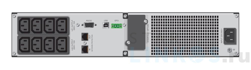 На 8 потребителей Разъемы IEC C13 Активная мощность 1800 Вт Защита и фильтрация 4 батареи 12 В, 9 А·ч