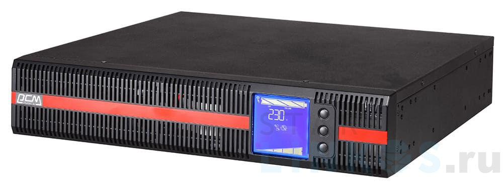 Online ИБП Powercom Macan MRT-3000SE на восемь потребителей с подключением через разъемы IEC320-C13 функционирует по схеме двойного преобразования переменного тока в постоянный и обратно, в результате чего на выходе выдает напряжение в виде чистой синусоиды. Полная мощность ИБП — 3000 ВА, активная (при PF > 0.99) — до 3000 Вт. Режимы работы ИБП: Линейный (постоянной генерации). Байпас — только при стабильном напряжении; питание потребителей от сети в обход выпрямителя и инвертора. Питание от АКБ. Свободной генерации (стабилизация частоты — ±0.25 Гц). Защита и функциональность ИБП поддерживает режим постоянной генерации при сетевом напряжении в диапазоне: при 25 % нагрузке — 120 ~ 276 В, при 50 % — 140 ~ 276 В, при 75 % — 160 ~ 276 В, при 100 % — 180 ~ 276 В. При скачках напряжения за пределами соответствующего диапазона, источник переходит на батарейное питание. Прочие функции: Защита от радиочастотных и электромагнитных помех за счет EMI/RFI-фильтров на входе и выходе. Защита от перегрузок (питание от сети): 105 ~ 120 % от номинальной — 30 с., 121 ~ 150 % — 10 с. Защита от перегрузок (батарейное питание): 101 ~ 109 % от номинальной — 10 с., 110 ~ 120 % — 3 с. Защита от высоковольтных импульсов рассеиванием до 1620 Дж. Защита от КЗ — моментальное отключение ИБП или нагрузки. Автоматическое и ручное переключение на байпас. Холодный старт — запуск ИБП с подачей питания на подключенное оборудование при отсутствующем напряжении в сети, только на заряде батарей. Автоотключение источника для защиты от глубокой разрядки АКБ. Автоматическое включение ИБП при возобновлении сетевого питания. Горячая замена аккумуляторов. Самотестирование при включении ИБП. Автономность Для резервного питания предусмотрены шесть свинцово-кислотных батарей емкостью 9 А·ч. Переход от одного режима к другому происходит мгновенно, так как аккумуляторы постоянно включены в электроцепь источника. Стандартное время работы ИБП в батарейном режиме при полной нагрузке составляет 2 ~ 4 мин., при половинной — 7 ~ 10 мин. Время автономной работы (13 ~ 15 мин. при полной нагрузке) можно повысить за счет подключения дополнительного батарейного блока (12 батарей 12 В, 7 А·ч, не включен в комплект). Длительность зарядки аккумуляторов от полной разрядки до 90 % — не более 4 ч. Основные параметры Для связи с ПК, дистанционного управления и контроля UPS оснащен портами USB, RS-232 и слотом для SNMP-адаптера (в комплект не входит), для отображения данных о работе источника и индикации уровня заряда АКБ — поворотным ЖК-дисплеем, для получения сигнала на отключение и передачи сигналов о разрядке АКБ и отсутствии напряжения в электросети — сухие контакты. Переход на режим батарейной поддержки, перегрузка, низкий заряд АКБ и ошибки сопровождают звуки тревожной сигнализация. Для охлаждения предусмотрены два 6-скоростных вентилятора. MRT-3000SE рассчитан на установку в стандартную 19″ стойку или на пол в вертикальном положении (подставки в комплекте). Габариты — 428×635×84 мм (2U). Масса нетто — 29 кг. Уровень шума — не более 50 дБ. Диапазон рабочих температур — 0 ºС… +40 ºС. Стандартная комплектация: ИБП Powercom Macan MRT-3000SE. Входной шнур питания (1.8 м, съемный). Коммуникационный кабель RS-232/DB9.