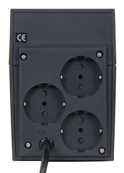 ИБП Powercom Raptor RPT-1000AP EURO USB на три потребителя, подключаемых через EURO-разъемы с резервным питанием, относится к устройствам линейно-интерактивного типа со встроенным стабилизатором, обеспечивающим выходное напряжение в форме аппроксимированной синусоиды. Номинальная мощность — 1000 ВА. Общая нагрузка — не более 600 Вт. Фильтрация и защита ИБП подает питание потребителям от сети при диапазоне напряжения 160 ~ 280 В. Встроенный автоматический стабилизатор ступенчато регулирует напряжение на выходе: одна ступень понижения и одна — повышения. Точность поддержания значений выходного напряжения — ±5 %. Прочие функции: Автоматическое отключение UPS: при нагрузке 110 % — через 60 с., 130 % — 3 с.; при КЗ — мгновенное отключение нагрузки. Отключаемая функция Green Mode — автоматическое выключение ИБП при отсутствии нагрузки или низкой потребляемой мощности устройств. Защита от глубокого разряда — отключение ИБП через час работы от АКБ. Холодный старт — включение ИБП при отсутствии напряжения в сети. Защита сетевой и телекоммуникационной линий от импульсных помех. Функция самотестирования. Автоматическая зарядка АКБ в выключенном состоянии. Автономность При отсутствии напряжения в сети ИБП переходит в режим питания от свинцово-кислотной герметичной батареи емкостью 9 А·ч. Продолжительность перехода — 2 ~ 4 мс. Длительность автономной работы при нагрузке 100 Вт или ПК с 17" монитором — 20 мин. Стандартное время восстановления заряда до 90 % — 3 ~ 4 ч. Основные параметры RPT-1000AP EURO USB оборудован светодиодной индикацией, коммуникационным USB-портом с поддержкой стандарта Smart Battery для связи с компьютером (мониторинг, удаленное завершение работы ПК). Для работы в локальной сети предусмотрены разделяемые розетки RJ-11/RJ-45, для тревожных оповещений (перегрузка, режим питания от батареи, низкий заряд АКБ) — звуковые сигналы. Дизайн — безвентиляторный. Уровень акустического шума — ниже 40 дБ. Диапазон рабочих температур — 0 ºС… +40 ºC. Габариты — 100×278×143 мм, вес нетто — 4.5 кг. Стандартная комплектация: ИБП Powercom Raptor RPT-1000AP EURO USB. Входной шнур питания 1.2 метра (встроен в корпус). Выходной кабель питания. Коммуникационный USB-кабель. CD-ROM диск с программным обеспечением. Инструкция по эксплуатации. Гарантийный талон.