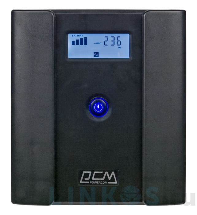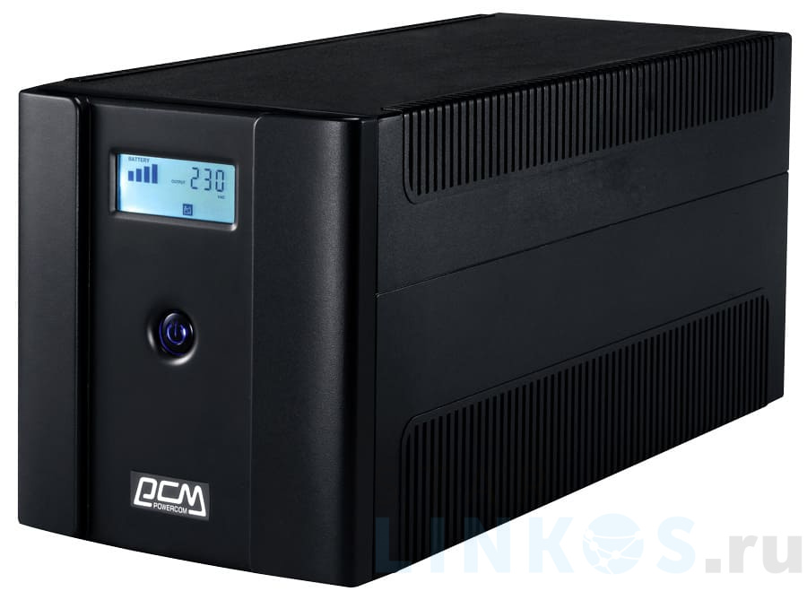 ИБП Powercom Raptor RPT-1025AP LCD на четыре потребителя, подключаемых через разъемы Schuko CEE7, оснащен встроенным стабилизатором и выдает на выходе напряжение в виде ступенчатой аппроксимации синусоиды. Топология устройства — линейно-интерактивная. Номинальная мощность — 1025 ВА. Активная мощность — 615 Вт. Фильтрация и защита При перепадах входного напряжения не более ±25 % ИБП подает питание потребителям от сети через стабилизатор, автоматически корректирующий напряжение на выходе: при повышении параметра на 9 ~ 25 % AVR понижает его на выходе на 13 %, при понижении на 9 ~ 25 % — повышает на 15 %. Если перепады напряжения выходят за пределы ±25 %, UPS переходит в режим батарейного питания. Прочие функции: Защита ИБП от перегрузки: отключение при нагрузке 110 % — через 60 с., 130 % — через 3 с. Защита от короткого замыкания — моментальное отключение от потребителей. Функция Green Mode (с возможностью отключения) — при низкой нагрузке ИБП отключается. Защита от глубокого разряда батарей — отключение ИБП через час работы на заряде АКБ. Холодный старт — при отсутствии в сети напряжения включение ИБП только на заряде батареи. Автоматическая зарядка АКБ при выключенном UPS. Защита сетевой или телекоммуникационной линий от импульсных помех RJ-45/RJ-11. Самотестирование. Автономность Для резервного питания при обесточивании предусмотрены две герметичные свинцово-кислотные батареи 12 В емкостью 7 А·ч. Типовое время переключения между режимами — 2 ~ 4 мс. Время зарядки аккумуляторов от 0 % до 90 % — 3 ~ 4 ч. Автономность при нагрузке 100 Вт (ПК с 17" монитором) составляет 20 мин. Основные параметры Для коммуникации с компьютером RPT-1025AP LCD оборудован USB-портом с поддержкой Smart Battery, для отображения режимов работы, заряда аккумулятора и выходного напряжения — LCD-дисплеем, для оповещений о переключении в режим питания от АКБ, перегрузке, низком заряде АКБ — звуковой сигнализацией. Безвентиляторный дизайн. Уровень шума — не более 40 дБ. Рабочие температуры — 0 ºС… +40 ºC. Габариты — 146×360×164 мм, вес нетто — 8.4 кг. Стандартная комплектация: ИБП Powercom Raptor RPT-1025AP LCD. Входной шнур питания 1.2 метра (съемный). Выходной кабель питания. Коммуникационный USB-кабель. CD-ROM диск с программным обеспечением. Инструкция по эксплуатации. Гарантийный талон.