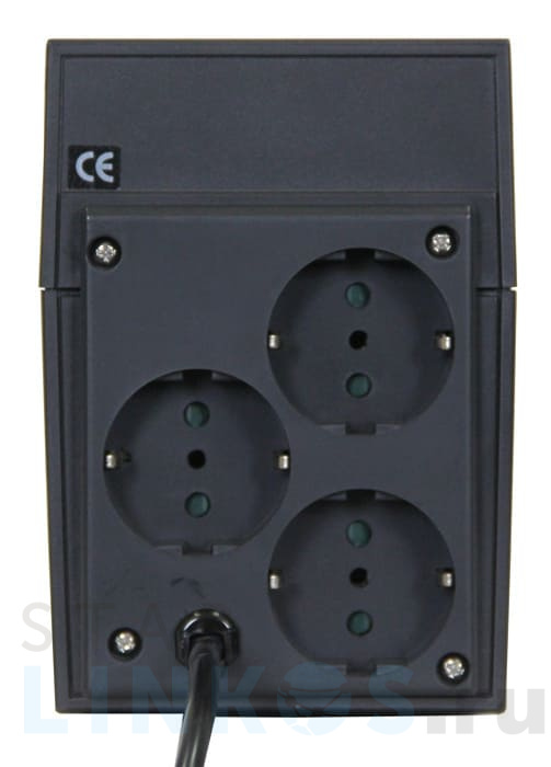 ИБП Powercom Raptor RPT-800AP EURO USB представляет собой линейно-интерактивное устройство, оборудован встроенным стабилизатором и выдает на выходе напряжение в виде аппроксимированной синусоиды. Номинальная мощность — 800 ВА. Активная мощность — 480 Вт. Рассчитан на три потребителя, подключаемых через EURO-разъемы с резервным питанием. Фильтрация и защита Сетевое питание потребителям ИБП подает при напряжении в диапазоне 160 ~ 280 В. Стабильность напряжения на выходе (±5 % от номинального) обеспечивает автоматический встроенный стабилизатор, повышающий и понижающий его на одну ступень. Прочие функции: Защита от короткого замыкания — моментальное отключение нагрузки. Защита от перегрузки: отключение ИБП при нагрузке 110 % — через 60 с., 130 % — через 3 с. Функция Green Mode (можно отключить) — при низкой нагрузке или отсутствии подключений ИБП отключается. Защита от глубокого разряда АКБ — отключение ИБП через час работы в режиме батарейной поддержки. Холодный старт — включение ИБП только на заряде батареи, при отсутствии в сети напряжения. Зарядка АКБ при выключенном UPS. Самодиагностика. Защита сетевой и телекоммуникационной линий от импульсных помех. Автономность Источник резервного питания при обесточивании — герметичная свинцово-кислотная батарея 12 В емкостью 7.2 А·ч. Среднее время переключения между режимами — 2 ~ 4 мс. Автономность при нагрузке 100 Вт (ПК с 17" монитором) — 13 мин. Восстановление заряда от 0 % до 90 % — 3 ~ 4 ч. Основные параметры Для связи с компьютером RPT-800AP EURO USB укомплектован коммуникационным портом USB с поддержкой Smart Battery, для защиты локальной или телекоммуникационной сети — разделяемыми розетками RJ-11/RJ-45, для индикации статуса — светодиодом, для оповещений о перегрузке, переключении в режим батарейной поддержки, низком заряде батареи — звуковой сигнализацией. Рабочие температуры — 0 ºС… +40 ºC. Безвентиляторный дизайн. Уровень шума — не более 40 дБ. Размер — 100×278×143 мм, масса нетто — 4.4 кг. Стандартная комплектация: ИБП Powercom Raptor RPT-800AP EURO USB. Входной шнур питания 1.2 метра (встроен в корпус). Выходной кабель питания. Коммуникационный USB-кабель. CD-ROM диск с программным обеспечением. Инструкция по эксплуатации. Гарантийный талон.