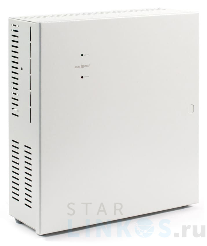 16-канальный резервированный источник вторичного питания «Бастион» Skat-V.16 подает 12 В на нагрузку. Ток нагрузки — 0.5 А для 16 каналов, 1 А для восьми каналов. Функциональность: Основной режим — от электросети при напряжении в интервале 187 В ~ 242 В. Резервный режим — от АКБ при обесточивании и скачках напряжения. Плавная регулировка напряжения на выходах для компенсации потерь в соединительных линиях: минимальное — 11.8 В ~ 12.9 В, максимальное — 14.6 В ~ 15.2 В. Электронная защита выходов от перегрузки по току, короткого замыкания нагрузки отключением питания на выходах; ток ограничения при КЗ — до 2.5 А. Защита нагрузки от высокого напряжения (от 18 В) при неисправности преобразователей. Фильтрация помех по каждому каналу для устранения взаимного влияния подключенных устройств. Защита АКБ от глубокой разрядки отключением устройств при 21 В ~ 22 В на клеммах батареи. Холодный пуск — запуск от заряженной батареи. В корпусе Skat-V.16 зарезервировано место для двух свинцово-кислотных герметичных аккумуляторов с напряжением 12 В и емкостью 26 А·ч (в комплект не входят). Суммарное напряжение АКБ после зарядки — 27 В. Источник питания оборудован сетевой колодкой, совмещенной с держателем сетевого предохранителя на 2 А, двумя платами преобразователя напряжения PN-V.8, сетевым (2 А), двумя входными (по 6.3 А) и аккумуляторным (5 А) предохранителями, клеммами подключения сетевого питания, выходов и батарей, индикаторами наличия сети и напряжения на преобразователях. Потребляемая мощность — 93 ВА. Рабочие температуры — 0 ºС… +40 ºС. Размер — 396×435×150 мм, вес — 5.7 кг. В комплект входит аккумуляторная перемычка, плавкие вставки ВПТ6 6.3А 250В и ВПТ6 2.0А 250В.