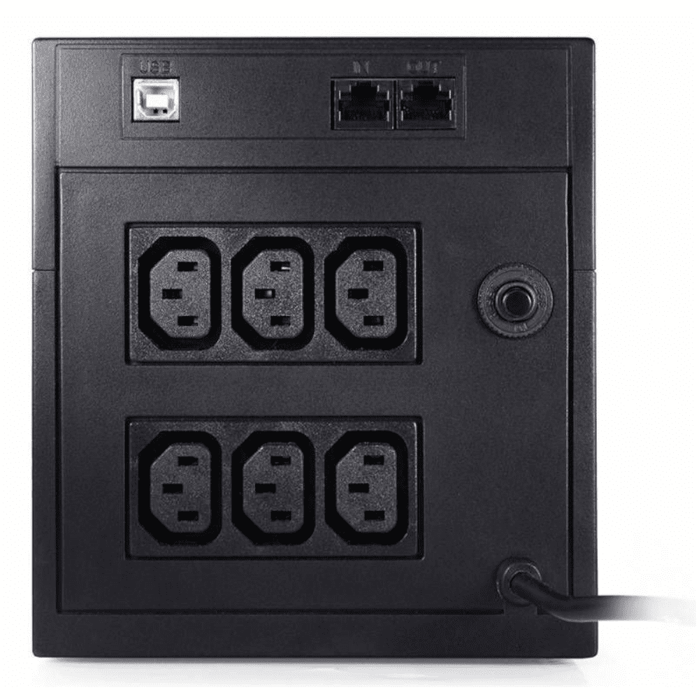 Линейно-интерактивный ИБП RPT-1500AP серии RAPTOR на 6 устройств, разъемы выхода IEC320 C13 — 6 шт., мощность полная — 1500 ВА, активная — 900 Вт, питание 220/230/240 В ±25%, 2×батареи 12 В, 7.2 А·ч — необслуживаемые герметичные свинцово-кислотные, режим «Green Mode» с возможностью отключения, защита ИБП и потребителей, AVR, защита RJ-11/RJ-45, USB-порт, светодиодная индикация, звуковая сигнализация, 0 … +40 °C.