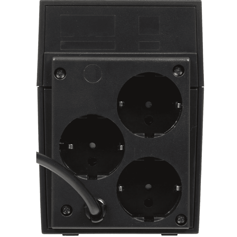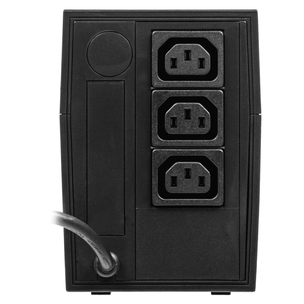 Линейно-интерактивный ИБП RPT-800A серии RAPTOR на 3 устройства, разъемы выхода IEC320 C13 — 3 шт., мощность полная — 800 ВА, активная — 480 Вт, питание в интервале 160 ~ 275 В, батарея 12 В, 7.2 А·ч — необслуживаемая герметичная свинцово-кислотная, режим Green Mode с возможностью отключения, защита, AVR (понижение/повышение — по 1 ступени), светодиодная индикация, звуковая сигнализация, 0 … +40 °C.
