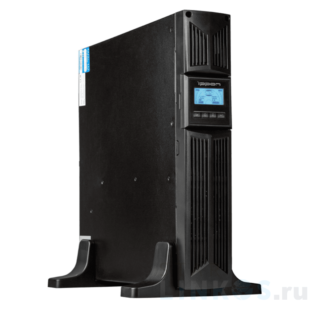 On-line ИБП Ippon Innova RT 2000 — однофазный UPS с двойным преобразованием напряжения входа (инвертор трансформирует переменный ток в постоянный, постоянный — в переменный), что изолирует подключенные устройства от сети, обеспечивает чистую синусоиду напряжения на выходе. Приоритетное использование — защита серверов и прочего ценного оборудования. Предназначен для параллельного подключения до восьми устройств через разъемы IEC 320 C13 с питанием от сети и батарей. Полная мощность ИБП — 2000 ВА, активная мощность (предельно допустимая нагрузка) — 1800 Вт. Рабочие режимы: питание от сети, от АКБ, Bypass (напрямую от сети через фильтры ИБП, без поддержки АКБ), ECO (Ecobomy — напрямую от сети через фильтры ИБП, с поддержкой АКБ), конвертера (фиксированная частота на выходе — 50 или 60 Гц), ожидание (нагрузка отключена). Функции защиты ИБП и подключенных устройств Постоянная фильтрация входного напряжения защищает подключенное к ИБП оборудование от перегрузок при питании от сети, АКБ и в режиме автоматического байпаса, от высоковольтных выбросов (764 Дж). UPS подает на устройства питание от сети, если входное напряжение не покидает пределы 120–276 В при нагрузке 50 % и 176–276 В при нагрузке 100 %. При выходе за пределы указанных диапазонов или отсутствии тока в сети переводит устройства на резервное питание. Дополнительные функции включают «Холодный старт» — включение UPS только на заряде АКБ, удаленное аварийное отключение EPO. Мощность устройства можно увеличить, подключив дополнительные батарейные модули (в комплект не входят). Автономность Для резервного питания ИБП укомплектован четырьмя свинцово-кислотными батареями емкостью 9 А·ч. Переключение между режимами происходит с нулевой задержкой. Длительность автономной работы: 30 % нагрузка — 21 мин. 50 % нагрузка — 11.2 мин. 70 % нагрузка — 6.2 мин. 100 % нагрузка — 3.2 мин. После полной разрядки батареи заряжаются до 90 % за 3 ч. При необходимости АКБ легко заменить. Интерфейсы и управление Интерфейсы связи — USB type B и RS-232. Для контроля и управления предусмотрен секторный LCD-дисплей с 2-цветной подсветкой, звуковыми сигналами и механическими кнопками управления для простого переключения режимов и отображения о них текущей информации, заряде АКБ, напряжении, нагрузках, коде неисправности. Для сбора данных предусмотрен универсальный слот для карт AS400 и SNMP. В комплект включен CD-диск с русифицированным ПО WinPower. В комплект Innova RT 2000 дополнительно включены кабели питания 2×IEC, USB, телефонный, Com (RS-232). Доступен монтаж в вертикальном и горизонтальном положениях, встраивание в стойку 19" (форм-фактор 2U Rackmount; монтажный комплект в поставку не входит). ИБП оснащен звуковой и световой сигнализацией. Охлаждение — принудительное (конвекция), шум < 50 дБ, IP20, габариты 438×86.5×435 мм, вес нетто — 19.6 кг.