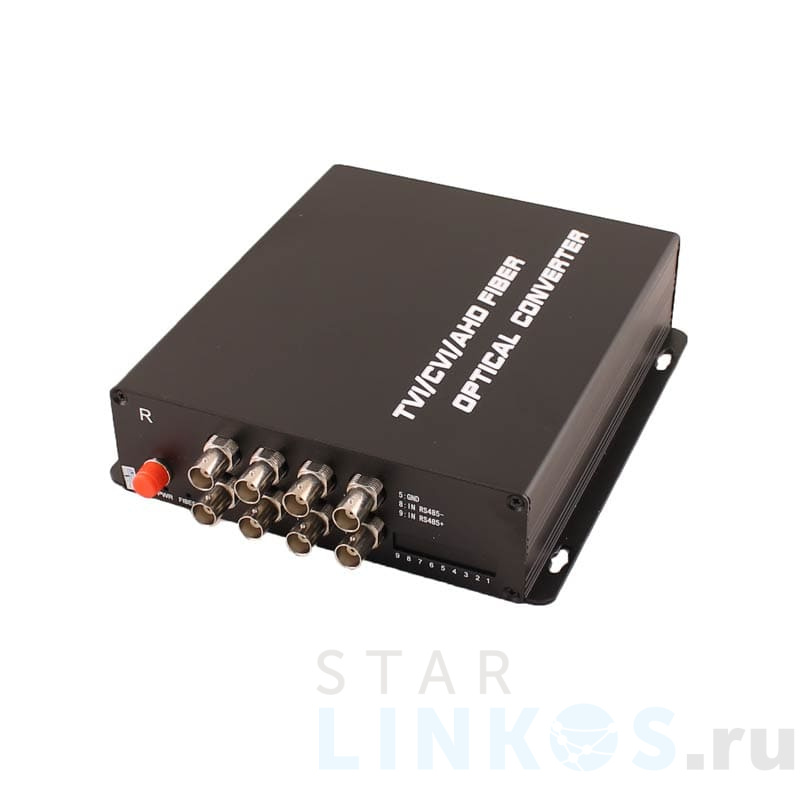 Оптический передатчик Osnovo TA-H8/1F рассчитан на трансляцию аналоговых видеосигналов по одномодовому волоконно-оптическому кабелю (9/125 мкм) на расстояние до 20 км, по многомодовому — до 500 м, по коаксиальному кабелю в разрешении 2 Мп (1920×1080) — до 300 м, в разрешении 1 Мп (1280×720) — до 500 м. Поддерживает форматы AHD, HD-CVI, HD-TVI и CVBS. Характеристики: Восемь видеоканалов. Полоса пропускания — 50 МГц. Рабочая длина волны — 1310 нм. Максимальное разрешение видео: при частоте 25 Гц — 1080р, при 50 Гц — 720р. Предусмотрены восемь BNC, оптический разъем FC, разъем подключения адаптера, винтовая клемма для контура заземления, индикация работы оптического интерфейса, передачи видеосигнала, питания. Питание — DC 5 В, 1 А (БП в комплекте). Потребляемая мощность —