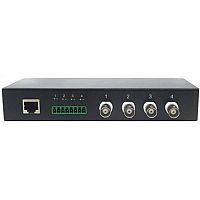 HD-CVI-оптоволоконный передатчик, передача по оптоволоконному кабелю до 20 км; длина волны передачи/приема 1310/1550 нм, одномодовый FC порт, RS-485, 4×BNC, разрешение 1080p/720p, автоматическое распознавание видео на входе, UPnP, DC 12 В, 6 Вт, -40… +70 ºC.