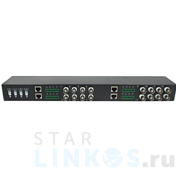 16 каналов HD-CVI, HD-TVI и AHD 4 RJ-45, 16 BNC, 4 клеммы До 500 м, до 2 Мп 0 ºС… +50 ºС