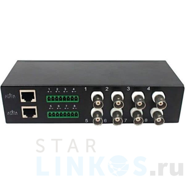 Восемь каналов HD-CVI, HD-TVI и AHD 2 RJ-45, 8 BNC, клеммы До 500 м, до 2 Мп 0 ºС… +50 ºС