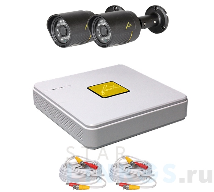 Оборудование комплекта позволяет: - просматривать видео с двух видеокамер в высоком качестве (до HD720p HD) как непосредственно на мониторе, подключив его к регистратору, так и удаленно с помощью PC или мобильных устройств с операционными системами iOs и Android в реальном времени; - записывать видео в режиме 24 часа в сутки / 365 дней в году на жесткий диск (HDD) объёмом до 6 Tb (HDD в комплект не входит, приобретается отдельно в зависимости от нужной глубины архива).