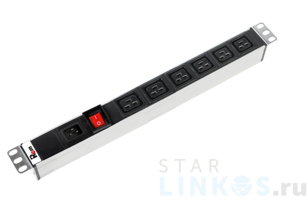 Типоразмер 19" 6 портов IEC 60320 C19 Номинальный ток 16 А Максимальная нагрузка 3.5 кВт Выключатель