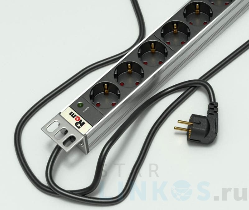 Типоразмер 19" 9 разъемов Schuko Номинальный ток 16 А Максимальная нагрузка 3.5 кВт Шнур 3 м