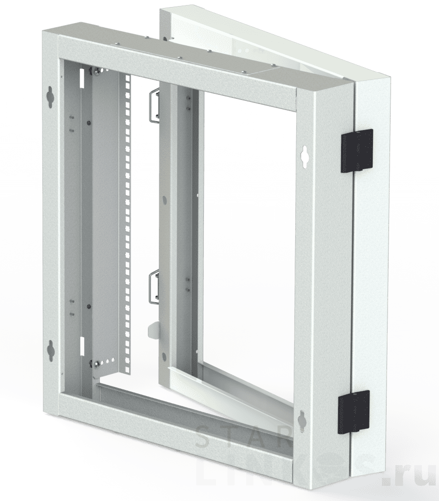 Поворотная секция TLK TWC-156015-BS-GY типоразмера 19" (серия 482.6 мм ГОСТ 28601.2-90 представляет собой конструкцию из соединенных плоскими шарнирными петлями поворотного и пристенного цельносварных модулей. Совместима с настенными телекоммуникационными шкафами TWC-156045-R-G-GY, TWC-156045-R-M-GY, TWC-156060-R-G-GY и TWC-156060-R-M-GY. Обеспечивает дополнительную глубину, доступ к оборудованию с четвертой стороны. Характеристики: Высота — 770 мм (15 U). Ширина — 600 мм. Глубина — 152 мм. Предельная распределенная нагрузка шкафа и секции: при общей глубине 606 мм — 50 кг, 756 мм — 35 кг. Вес — 15 кг. Две L-образных направляющих в пристенном модуле. Шаг регулировки направляющих — 12.5 мм. Угол распахивания поворотного модуля — 100º. Два замка-защелки поворотного модуля. Заглушенные проемы 270×56 мм в пристенном модуле — для кабельных вводов. Система заземления, совместимая с системой шкафа. Направляющие выполнены из листовой стали толщиной 2 мм с покрытием из эпокси-полиэфирной краски (хром), остальные элементы – из стали толщиной 1.5 мм с полимерно-эпоксидным порошковым покрытием серого цвета (RAL 7305). Климатическое исполнение — УХЛ 4.2 (ГОСТ 15150-69): рабочие температуры — +1 ºС… +40 ºС, влажность — не более 80 %. Секция поставляется с комплектами ключей, проводов заземления и метизов.