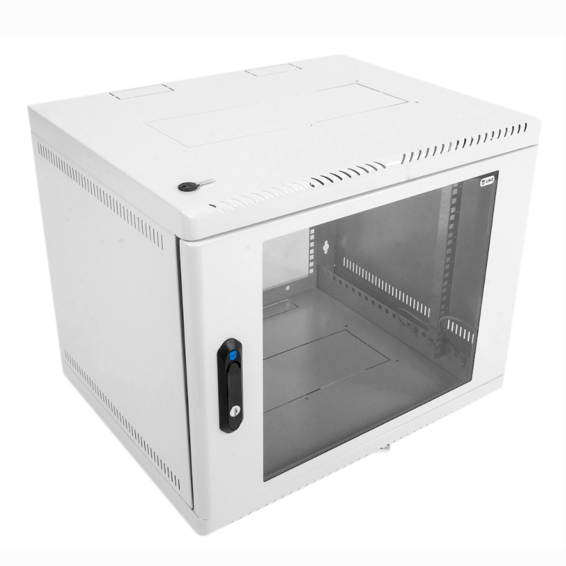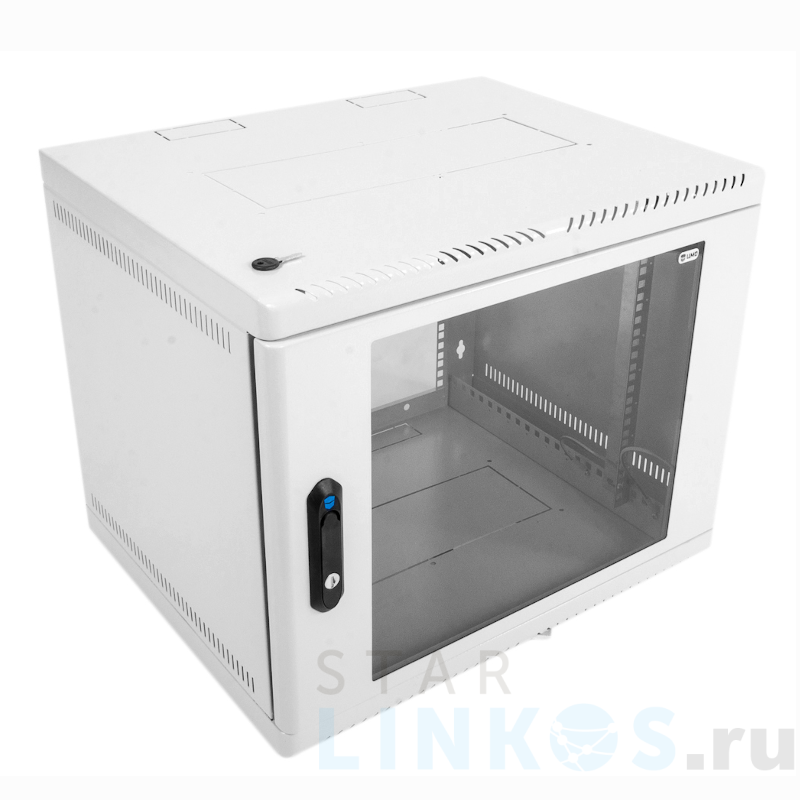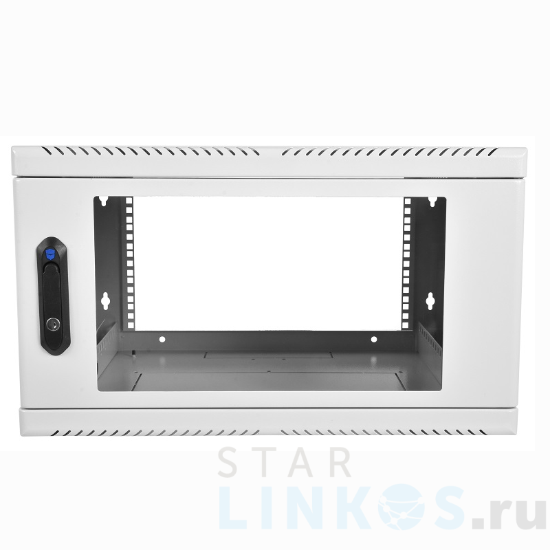 Шкаф телекоммуникационный 19", 6 U (600×300 мм), глубина 250 мм, нагрузка до 50 кг, стеклянная дверь, замок, два кабельных ввода 95×40 мм, 346×599×310 мм, 10 кг, +1 ºС… +45 ºС.