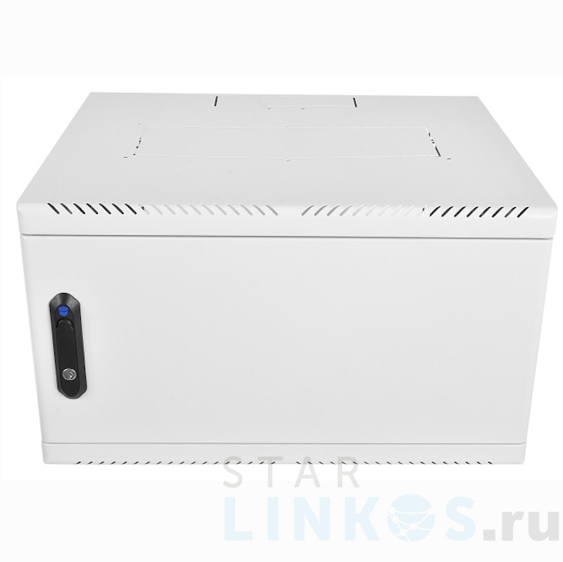 Шкаф телекоммуникационный 19", 6 U (600×300 мм), глубина 250 мм, нагрузка до 50 кг, металлическая глухая дверь, замок, два кабельных ввода 95×40 мм, 346×599×310 мм, 10 кг, +1 ºС… +45 ºС.