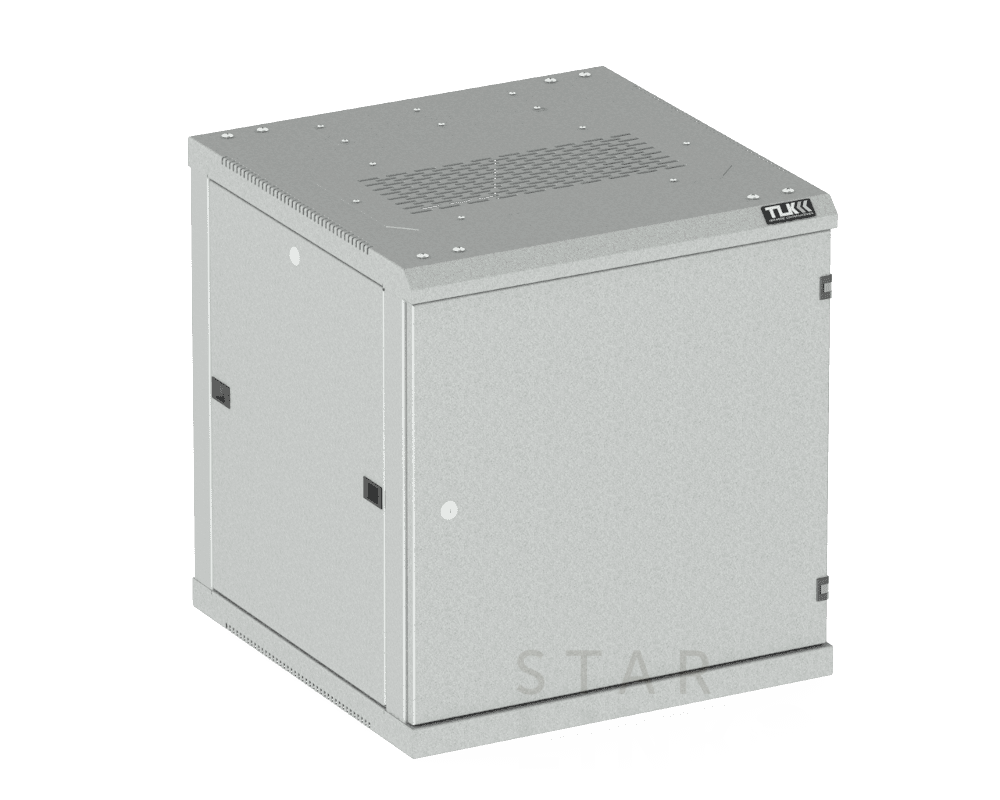 Телекоммуникационный настенный сборно-разборный шкаф TLK TWC-096060-R-M-GY стандарта 19" (серия 482.6 мм по ГОСТ 28601.2-90) состоит из передней и задней рамы с четырьмя соединительными профилями, основания, крыши, цельнометаллической двери универсальной навески, легкосъемных боковых стенок, задней стенки и двух пар вертикальных направляющих, регулируемых по глубине. Характеристики: Высота — 503 мм (9U). Ширина — 600 мм. Глубина — 600 мм. Полезная глубина — 540 мм. Шаг регулировки направляющих — 25 мм. Предельное расстояние между направляющими — 490 мм. Вес — 28 кг. Допустимая статическая нагрузка — 60 кг. Юнитовая перфорация направляющих по стандарту DIN 41494-7 и ГОСТ Р 53246-2008. Угол поворота двери — 180º. Точечные замки и защелки быстрой фиксации стенок. Заглушенное посадочное место 440×215 мм для вентиляторного блока. Заглушенные отверстия 270×56 мм для кабельных вводов в крыше, основании, задней стенке. Перфорация крыши и основания для воздухообмена. Контур заземления (провода в комплекте). Предусмотрен монтаж шкафа на пол (на опоры) и на пристенную поворотную секцию TWC-096015-BS-GY. Глубина секции — 156 мм. Несущая способность шкафа с секцией — 50 кг. Угол поворота секции — 100º. Высота шкафа с опорами — 550 ~ 565 мм. Предельная распределенная нагрузка — 160 кг. Опоры и секция в комплект не входят. Каркас и направляющие TWC-096060-R-M-GY выполнены из стали толщиной 1.5 мм, остальные металлоконструкции — из стали толщиной 1.2 м. Поверхности защищены ударопрочным порошковым покрытием серого цвета (RAL 7035). Климатическое исполнение шкафа — УХЛ 4.2 (ГОСТ 15150-69): рабочие температуры — +1 ºС… +40 ºС, влажность — до 80 %. Защита от пыли и влаги соответствует IP20.