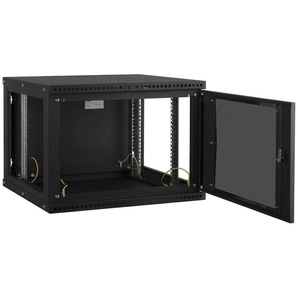 Телекоммуникационный шкаф TLK TWI-126060-R-G-BK настенной установки и сборной конструкции выполнен по ГОСТ 28601-90 и IEC 297 в типоразмере 19", черном цветовом решении RAL 9005. Укомплектован четырьмя стальными оцинкованными направляющими. Параметры: Глубина — 600 мм. Полезная глубина — 580 мм. Высота — 12 U (569 мм). Ширина — 600 мм. Толщина стенок из листовой стали — 1 мм. Толщина стальной двери с оправой под стекло — 1 мм. Толщина стали направляющих — 1.5 мм. Толщина стали задней стенки — 1 мм. Максимальное расстояние между направляющими — 482 мм. Максимально допустимая нагрузка — 40 кг. Замок на двери и каждой боковой стенке. Ударопрочное порошковое полимерно-эпоксидное покрытие. Универсальная (правая/левая) с углом открывания 180º. Ударопрочное 4-миллиметровое стекло с 5-процентной тонировкой. Заглушенные отверстия для вентиляторных блоков в крыше и основании. Два заглушенных кабельных ввода (270×56) мм в крыше и основании. Система заземления из пяти проводов, создающих замкнутый контур. В собранном виде защита шкафа от пыли и влаги отвечает требованиям стандарта IP20. Размер — 600×600×569 мм, вес — 25 кг.