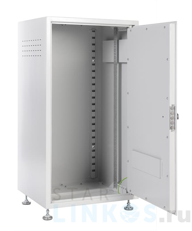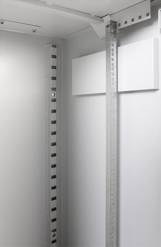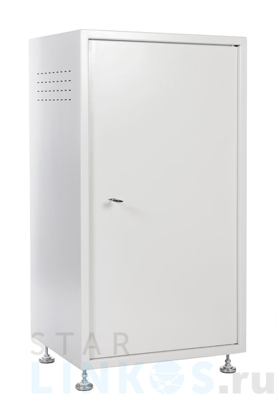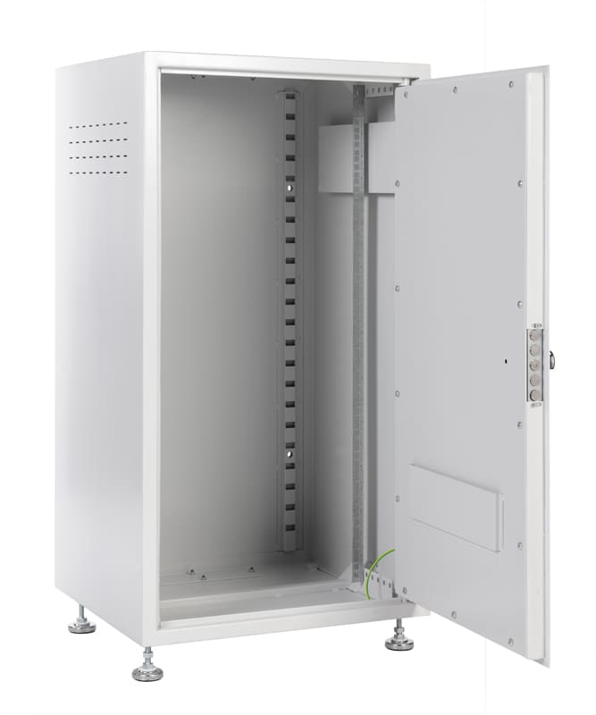 19-дюймовый телекоммуникационный шкаф ЦМО ШТК-А-22.6.5 разработан с учетом условий ограниченного контроля доступа. Устойчив к механическим воздействиям и взлому. Соответствует ГОСТ 28601-90 (МЭК 297), УХЛ2 по ГОСТ 15150–69. Защита Цельнометаллическая сварная конструкция изготовлена из оцинкованной листовой стали толщиной 2 мм. Дверь с тремя точками фиксации (в закрытом положении) углублена на 20 мм, укомплектована усиленным ригельным замком. Предусмотрена дополнительная фиксация шкафа к стене — через отверстия в задней панели. Характеристики, комплектация Основные параметры: Высота — 22 U. Полезная высота — 980 мм. Ширина — 600 мм. Глубина — 525 мм. Полезная глубина — 447 мм. Контур заземления. Угол поворота двери — 90°. Защищенные от проникновения вентиляционные отверстия для естественного воздушного охлаждения. Кабельный ввод 240 мм на 50 мм в цоколе. Кабельный ввод 240 мм на 50 мм в крыше. Две пары оцинкованных стальных направляющих с юнитовой маркировкой. Допустимая распределенная статическая нагрузка — 250 кг. ШТК-А-22.6.5 поставляется собранным. В комплекте — регулируемые опоры, компенсирующие неровности поверхности. Размер шкафа — 600×525×1055 мм, вес — 65 кг. рабочие температуры — +5 °C… +40 °C. Допустимая влажность — 80 % при 20 °C.