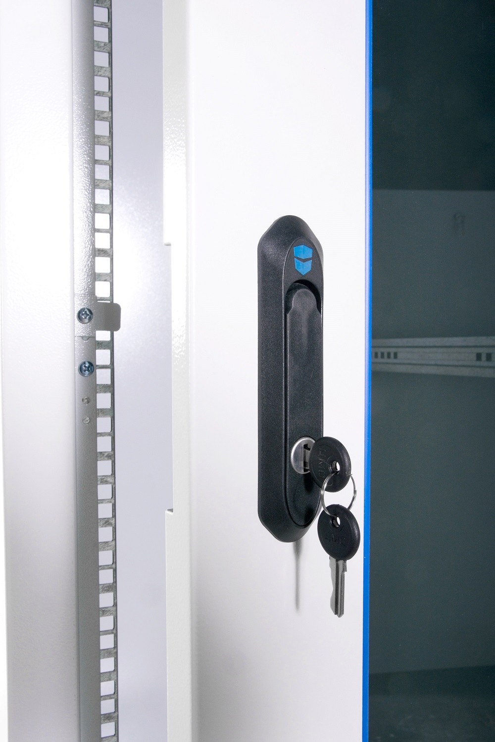 Сборно-разборный телекоммуникационный шкаф ЦМО ШТК-Э-48.8.10-44АА с 4-сторонним доступом к оборудованию изготовлен из листовой стали, соответствует типоразмеру 19" по ГОСТ 28601-90 (МЭК 297), УХЛ 4.2 по ГОСТ 19150 (допустима эксплуатация в помещении при температуре +5 °C… +40 °C, влажности до 80 % при 25 °C), IP20 (защита от пыли и влаги). В составе конструкции две сборные рамы, две пары вертикальных юнитовых направляющих, крыша с окном под вентиляторный блок и отверстиями под щеточные кабельные вводы, основание с окном под вентиляторный блок и отверстиями под щеточные кабельные вводы, две боковые стенки с усиленными точечными замками, две двери универсальной навески. Для естественной вентиляции металл дверей перфорирован. Основные характеристики: Высота — 48 U. Ширина — 798 мм. Глубина — 1000 мм. Полезная глубина — 915 мм. Усиленные точечные дверные замки. Нагрузочная способность — 710 кг. Предусмотрен напольный монтаж — на четыре винтовые опоры, компенсирующие неровности поверхности. Опоры включены в комплектацию шкафа. Листовые детали покрыты полимерной шагреневой порошковой краской светло-серого (RAL 7035) цвета, монтажные профили оцинкованы. Габариты шкафа — 798×1000×2254 мм, вес — 127 кг.