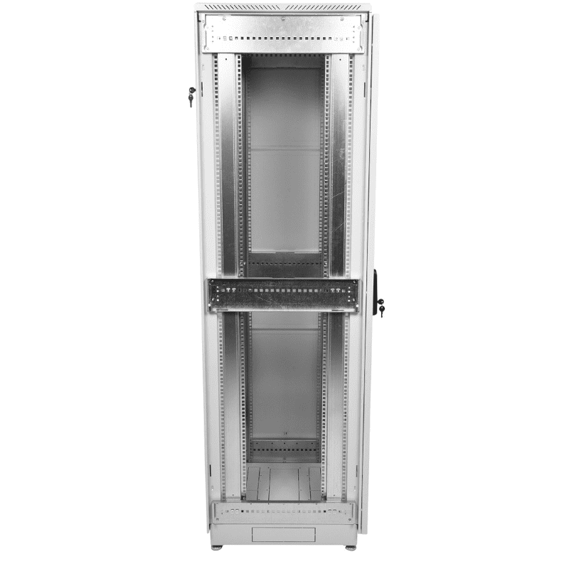 Шкаф телекоммуникационный 19", 33 U, глубина 655 мм, нагрузка до 450 кг, стеклянная дверь, замок, кабельные вводы, 600×800×1625 мм, 89.91 кг.