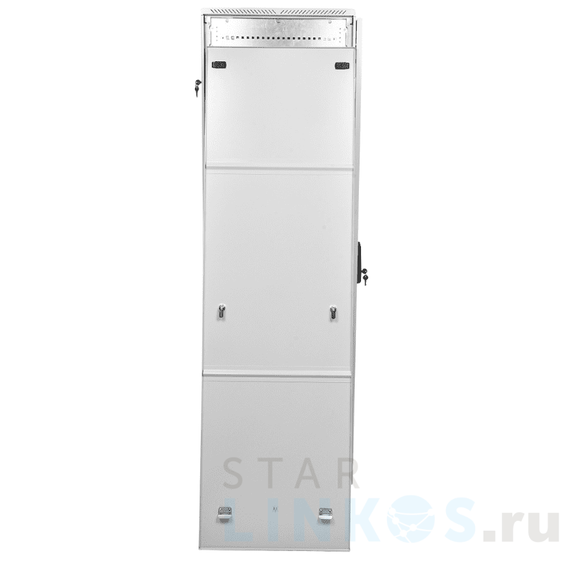 Телекоммуникационный напольный шкаф ЦМО ШТК-М-42.8.8-1ААА предназначен для размещения оборудования систем видеонаблюдения (коммутаторов etc) и телекоммуникационного оборудования. Состоит из основания, крыши, соединенных швеллерами двух сварных рам. Параметры: Высота в юнитах — 42 U. Высота — 2030 мм. Ширина — 800 мм. Глубина — 800 мм. Полезная глубина — 655 мм. Максимальная распределенная вертикальная нагрузка — 550 кг. Предусмотрено два кабельных ввода 420 на 50 мм в крыше, два кабельных ввода 420 на 50 мм в основании, по три кабельных ввода 250 на 62 мм в каждой боковой стенке. Отверстия в крыше и основании подходят для щеточных вводов. Все вводы заглушены — перед эксплуатацией нужно снять заглушки. Достоинства: Каркасная конструкция высокой (за счет швеллеров) жесткости. Усиленные боковые стенки с пластиковыми защелками и двумя точечными замками. Антикоррозионное покрытие с декоративным слоем полимерно-порошковой предварительно фосфатированной краски. Винтовые ножки для компенсации неровностей поверхности. Дверь универсальной навески (левая и правая) — из листовой стали и стекла, с усиленным точечным замком. Угол открывания — 180º. Четыре заглушенных посадочных места под вентиляторы — два в крыше и два в основании. Дополнительная перфорация в крыше для улучшения циркуляции воздуха. Оцинкованные направляющие. Система заземления. Шкаф отвечает требованиям ГОСТ 28601.2–90 (МЭК 297) и ГОСТ 15150–69. В собранном виде защита шкафа от пыли и влаги отвечает требованиям стандарта IP20. Габариты (Ш, Г, В) — 800×800×2030 мм, вес — 123.39 кг. Полки, роликовые опоры, вентиляторные блоки, блок розеток, комплекты щеточных вводов, фальшпанели и прочие аксессуары в комплект не входят — их надо покупать отдельно. Базовая комплектация: Основание. Крыша. Две сварные рамы. Два верхних швеллера. Два нижних швеллера. Задняя стенка с замками. Две боковые стенки с замками. Стеклянная дверь с замком. Четыре вертикальных направляющих. Комплект крепежа с демпферами. Комплект заземления. Четыре винтовые ножки.