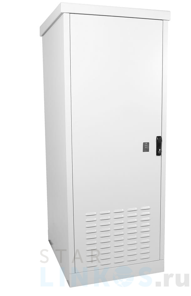 19-дюймовый телекоммуникационный шкаф ЦМО ШТВ-1-12.7.6-43АА разработан с учетом условий круглогодичной уличной эксплуатации под непосредственным воздействием погодных проявлений — в диапазоне рабочих температур –50 °C… +45 °C с допустимой относительной влажностью не более 80 % при 20 °C. Соответствует ГОСТ 28601-90 (МЭК 297), УХЛ1 по ГОСТ 15150. Защита от погодных условий Степень защиты корпуса от влаги и пыли соответствует IP65, с установленным вентиляционным оборудованием — IP54. Крыша высотой 8 см выполнена с уклоном и системой «антикапля» — для отвода воды без попадания на дверной уплотнитель. В двери вырезаны вентиляционные отверстия с козырьками для естественной циркуляции воздуха без попадания внутрь воды и инородных частиц. По внутренним поверхностям проложен фольгированный теплоизоляционный материал — кроме основания, теплоизоляция для него входит в комплект (материал наклеивают после установки шкафа). Дверь уплотнена по контуру пенорезиной. В крыше и двери предусмотрены заглушенные окна для монтажа климатического оборудования. Характеристики, комплектация Основные параметры: Сварная конструкция. Высота — 12 U. Ширина — 745 мм. Глубина — 630 мм. Полезная глубина — 520 мм. Контур заземления. Универсальная навеска двери. Съемный цоколь высотой 100 мм (можно заменить на 300-миллиметровый). Две пары оцинкованных стальных направляющих с юнитовой маркировкой. Допустимая распределенная статическая нагрузка — 800 кг. ШТВ-1-12.7.6-43АА поставляется собранным. Изготовлен из оцинкованной стали толщиной до 2 мм. Поверхности покрыты порошковой краской светло-серого (RAL 7035) цвета. Размер шкафа — 745×630×775 мм, вес — 78 кг. Для установки нужна ровная горизонтальная поверхность.