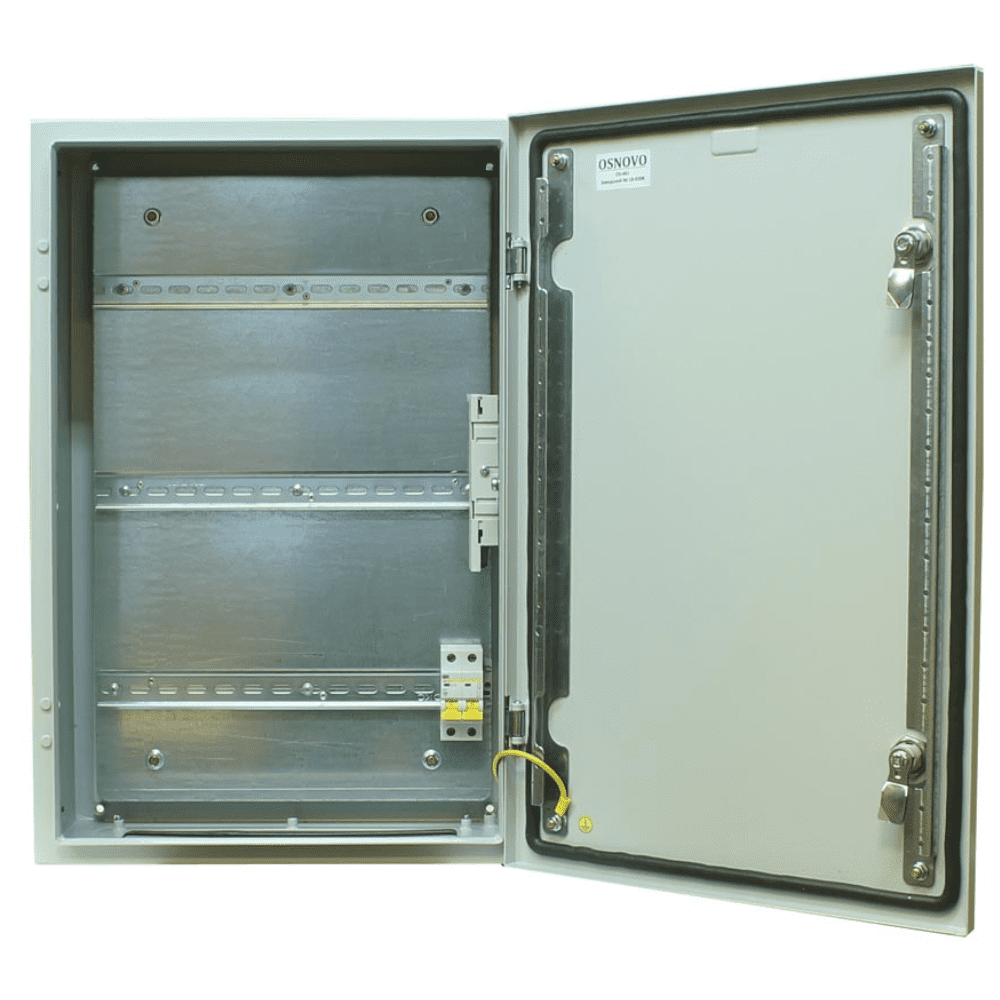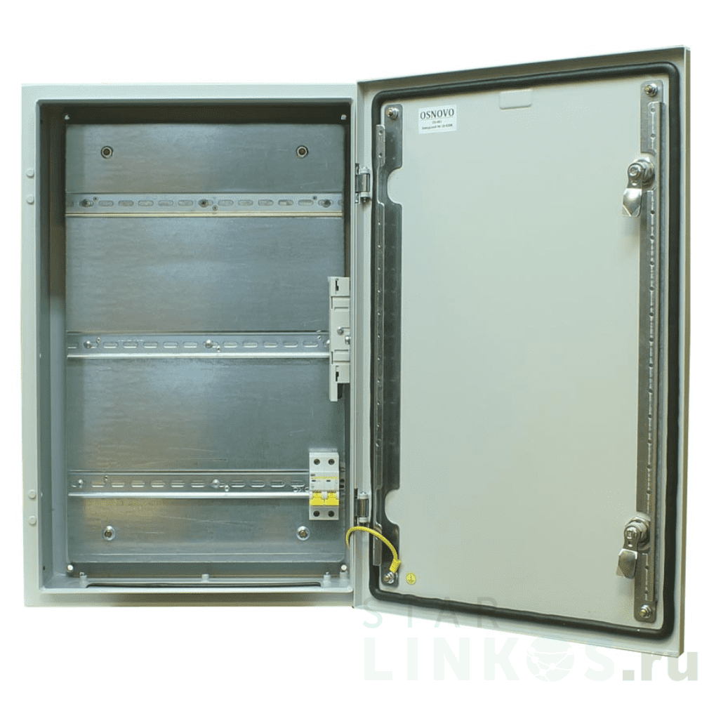 Станция Osnovo OS-461 предназначена для защиты электрооборудования, требующего установки на улице. Включает герметичный бокс и оптический кросс — разъемное соединение для удобной коммутации оптоволоконного кабеля с оборудованием. Адаптирован для работы на улице в любое время года: корпус защищен от влаги и пыли по стандарту IP66, температура внутри и снаружи допустима в пределах -50 ºС... +50 ºС, для герметичности кабелей предусмотрен комплект гермовводов. При КЗ или перегрузке отключение станции от электросети выполняет автоматический выключатель (2Р, 10 A). Характеристики оптического кросса: Габариты: 183×113×22 мм. Модуль на два SC-порта. Ложемент на восемь КДЗС. Два пигтейла (оптические, одномодовые, тип SC 0.9 мм, 1.5 м). Для установки оборудования на встроенные din-рейки доступное место (по ширине): для верхней — 340 мм, для средней — 320 мм, для нижней — 290 мм. Корпус шкафа — металлический, габариты — 400×600×210 мм. Комплектация: Уличная станция — 1шт. Набор гермовводов — 1шт. Ключ от монтажного шкафа — 1 шт. Набор для оптического кросса (пигтейл SC — 2 шт., КДЗС — 2 шт.). DIN-рейка 7.5×35 мм, 1.2 м. Шина для внутреннего монтажа, 210 мм. Расходные материалы. Опции: Датчик вскрытия двери. Встроенный светильник на 220 В. Монтаж на стену, на столб.