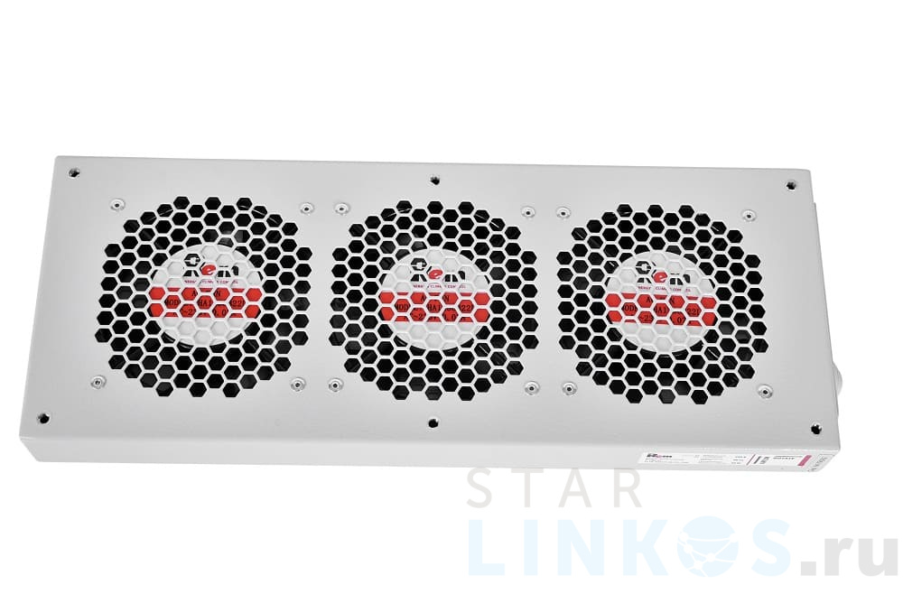 Модуль R-FAN-3J для телекоммуникационных шкафов ШРН, ШРН-Э, ШРН-М, ШТК-М, ШТК-МП, ШТК-Э, ШТК-С, ШТВ и EMS состоит из трех односкоростных осевых вентиляторов. Характеристики: Производительность — 450 м³/ч. Высота (глубина) — 45 мм. Ширина — 170 мм. Длина — 441 мм. Вес — 2.95 кг. Уровень шума — 3×43 дБ. Напряжение питания — 230 В. Потребляемая мощность — до 48 Вт. Для подключения предусмотрена клеммная колодка (шнур питания в комплект не включен). При установке в помещениях с высоким уровнем запыления или на улице нужны фильтры R-FAN-F-IP21 или R-FAN-FIP55. Корпус решен в светло-сером цвете, покрытие поверхности — фосфатирование и порошковая краска. Климатическое исполнение — УХЛ 4.2 (ГОСТ 15150-69). В комплект входит крепеж. Упаковка снабжена голографической пломбой.