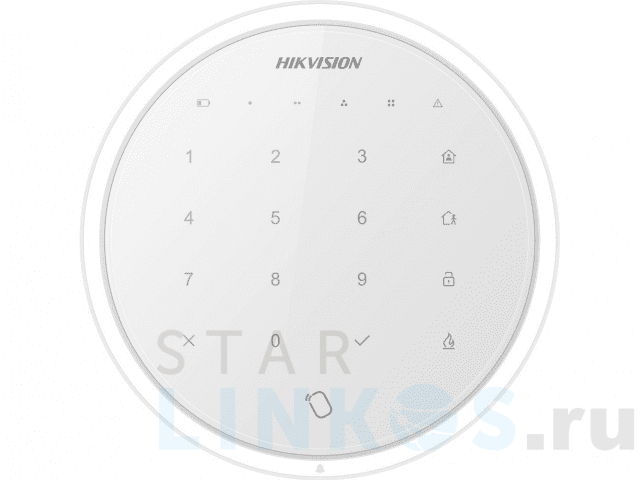 Беспроводная клавиатура Hikvision DS-PKA-WLM-868 представляет собой полностью сенсорный экран со светодиодной подсветкой. Предназначена для дистанционной постановки на охрану, снятия с охраны (в том числе через идентификацию IC-картой), регистрации патрульной карты, управления тревогами etc. При подключении к контрольной панели поддерживает безопасность двусторонней связи за счет шифрования AES-128. Предусмотрены клавиши: Пожарная тревога. Охрана при нахождении в помещении. Охрана при нахождении вне помещения. Снятие с охраны. Удаление и подтверждение тревог. Радиочастотные характеристики: Частота передачи — 868 МГц. Скорость передачи — 4.8 кбит/с. Дальность действия радиосвязи — до 800 м на открытом пространстве. Модуляция — 2GFSK. Мощность сигнала — 10 дБм. DS-PKA-WLM-868 оборудована RFID-считывателем с рабочей частотой 14.1 МГц, зуммером, индикаторами питания, сбоя, тревоги, постановки и снятия с охраны, тампером, резервным серийным интерфейсом. Питание обеспечивают четыре заменяемые батареи (АА, DC 3 В) со сроком службы 3 года. Рабочие температуры — -10 ºС… +55 ºС. Размер — Ø131.5×23 мм.