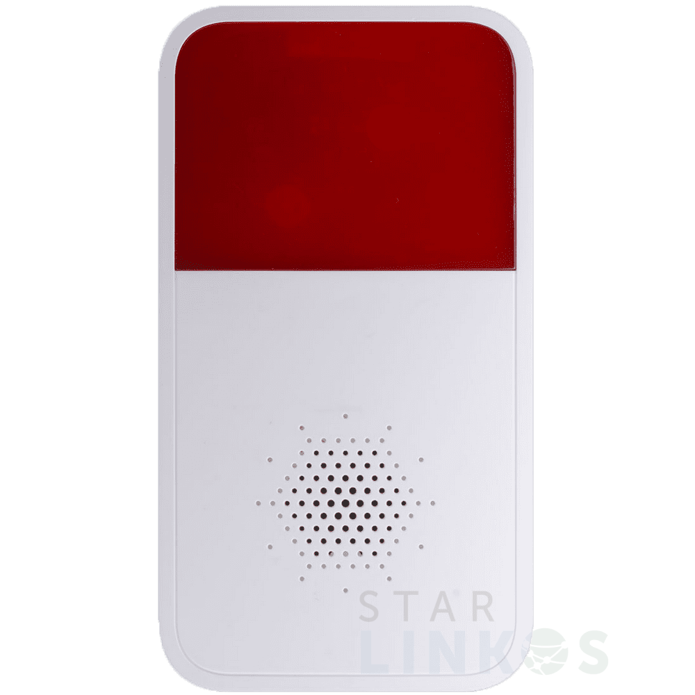 Беспроводная сирена охранной сигнализации, мощность звука 85 дБ (1 м), рабочая частота 434 МГц, мощность передачи 10 dBm, дальность передачи до 700 м, тамперная защита, питание от 4 аккумуляторов, настенный монтаж, ABS-пластик.