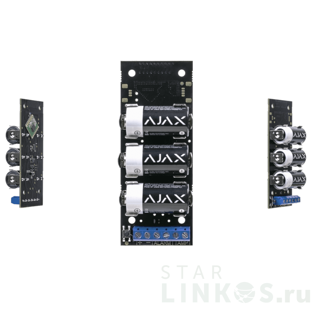 Беспроводной модуль Ajax Transmitter для интеграции сторонних датчиков подключает к системе Ajax уличные проводные и автономные устройства с проводным входом — детекторы движения, утечки газа и жидкости, разбития, возгорания, ИК-барьеры, термореле etc. Оснащен тремя парами контактов: питание (подача на датчики от батарей модуля), Alarm и Tamper (NO/NC, прием информации о тревоге и срабатывании тампера внешнего датчика). Передает тревожные сообщения на централь Ajax. Дальность связи с хабом по защищенному протоколу Jeweller — до 1600 м (без корпуса и при отсутствии преград). Технические характеристики: Режимы обработки сигналов — импульсный или бистабильный. Совместимость — с Hub, Hub Plus, ReX. Максимальная мощность радиосигнала — 20 мВт. Время доставки сигнала — 0.15 с. Transmitter работает от трех батарей CR123A (3 В, предустановлены, срок работы без замены — до 5 лет). Дополнительно может обеспечивать четыре режима подачи питания внешнему датчику. Функциональность: Подключение к хабу — сканом QR-кода в приложении Ajax для смартфона. Настройка через смартфоны с ОС iOS и Android. Двусторонняя связь с централью. Тревога при на отрыве, смещении — по сигналу акселерометра. Антисаботаж — оповещение о глушении, шифрование, защита от подлога. Учет заряда батарей. Световой индикатор уровня сигнала. Установка модуля — на улице и в помещении, в корпус проводного датчика (при наличии места), монтажную коробку или радиопрозрачную прочную оболочку. Монтажный комплект включен в поставку. Диапазон рабочих температур — -25 °С… +50 °С. Размер — 100×39×22 мм. Вес — 74 г.