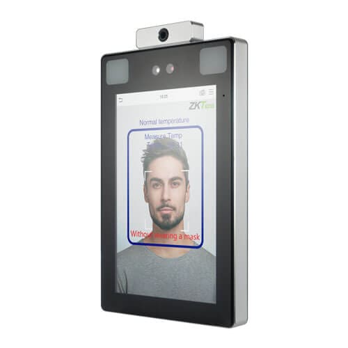 Терминал Zkteco ProFaceX-TD предназначен для эпидемиологического контроля с одновременным контролем доступа — камера захватывает лицо и ИК-датчик измеряет температуру лба. Измеряет температуру тела человека с точностью ±0.3°C, детектирует на лице маску, поддерживает идентификацию по геометрии лица и ладони. Объем RAM — 512 Мбайт, Flash — 8 Гбайт, вместимость — шаблоны 30 000 лиц и 5000 ладоней, 1 000 000 событий, 30 000 фото пользователей, 10 000 фотографий событий. Терминал основан на 2-ядерном процессоре с тактовой частотой 900 МГц и оснащен камерой с разрешением 2 Мп и ультразвуковым сенсором измерения расстояния до объекта, автоматически выводящим устройство из спящего режима. Рассчитан на уличную круглогодичную эксплуатацию: защита корпуса от пыли и влаги соответствует стандарту IP68, от механических воздействий — по коду IK04, диапазон рабочих температур — -30 ºС… +60 ºС. Функциональность: Измерение температуры тела в диапазоне +34 ºС… +45 ºС на расстоянии 30 ~ 50 см. Поддержка режима согласования 1:N при идентификации лиц, ладоней. Идентификация лиц, ладоней при сильной освещенности — до 50 000 лк. Обнаружение маски на лице. Распознавание лиц за 0.3 с, ладоней — 0.35 с. WDR — снижение влияния яркого света, функция встроенной камеры. Поддержка расписания для групп, праздников, летнего времени. Anti-passback — запрет повторного прохода без зарегистрированного выхода. Поддержка доступа по паролю. Защита от подделок при идентификации. Сохранение снимка события. Ведение журнала событий. Регулируемая яркость подсветки экрана. ProFaceX-TD укомплектован сенсорным экраном IPS 8", микрофоном и динамиком. Из интерфейсов на борту: TCP/IP, Wiegand вход/выход, RS-485, RS-232, релейный выход, выход тревожной сигнализации, вход Aux (линейный вход), кнопка выхода, вход геркона. Питание — DC 12 В. Потребляемый ток —