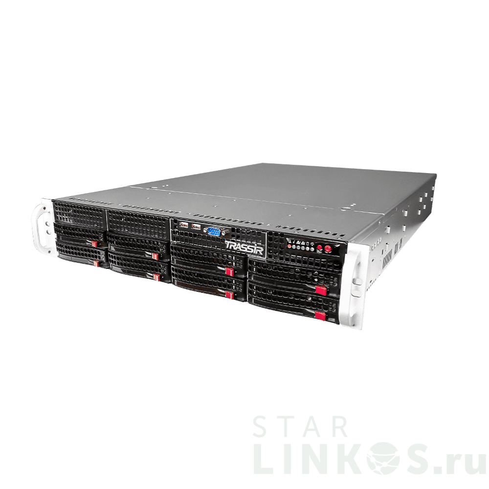 TRASSIR NeuroStation рассчитан на подключение до 128 IP-камер — без ограничений по разрешению и скорости трансляции. Поддерживает кодеки Н.265+, Н.265, Н.264, MPEG4, MJPEG. Принимает и обрабатывает изображения с других серверов TRASSIR (Offload-аналитика). Оборудован тремя независимыми видеовыходами — DisplayPort, D-SUB и HDMI — для подключения трех мониторов (в зависимости от модификации количество видеовыходов может меняться). На передней панели расположены два порта USB 2.0, на задней — два USB 3.1 Gen1, один USB 3.1 Gen2 Type A, один USB 3.1 Gen2 Type C. На борту два сетевых порта RJ-45, восемь SATA-интерфейсов для подключения HDD, PS/2 — для клавиатуры.