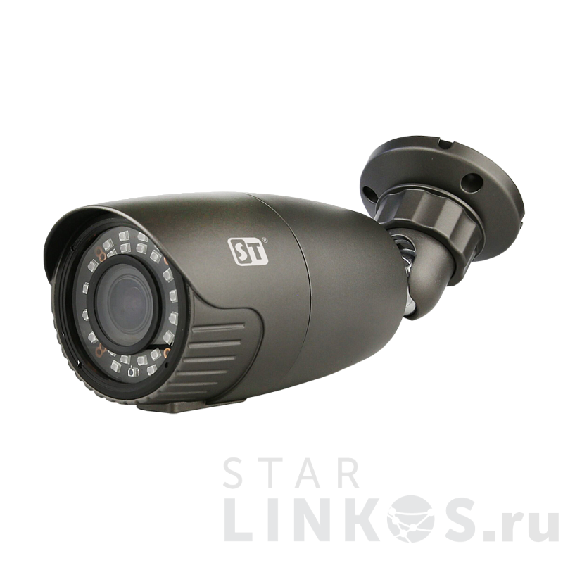 Видеокамера ST-4023, (версия 2), цветная, Разрешение:4MP /960H, 4-in-1 (4 режима работы: Analog/AHD/TVI,CVI), уличная, с ИК подсветкой, с вариофок.объективом, Цилиндрическая, Сенсор: 1/2,7" Progressive Scan CMOS, Фокусное расстояние: 2,8-12mm (соответствует 105-31° по горизонтали), Дальность ИК подсветки: до 50 м, 30 SMD IRLED, Светочувствительность (мин. освещение): 0,01 / 0 Lux с ИК, Электронный затвор: 1/25-1/10000 сек, Напряжение питания: 12 В, Ток потребления максимальный: 0,38 А, OSD-меню: есть, Функции улучшения изображения: BLC,DWDR,AWB,MWB,2DNR,AGC, ИК-фильтр: IR-CUT (механический), Smart IR: есть, 25 к/сек Real Time, Регулировка кронштейна: 3D-Ось, Рабочая температура: -50°… +60°С, Степень защищенности/вандалостойкость: IP66, Материал корпуса: МЕТАЛЛ