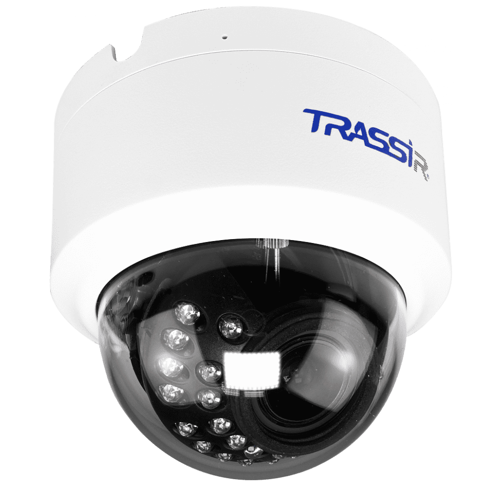 2 Мп (1920×1080) IP-камера TRASSIR TR-D2D2 построена на высокочувствительном (0.003 лк) CMOS-сенсоре, снижающем время работы в черно-белом режиме за счет способности формировать цветное видеоизображение даже при недостаточном освещении. Укомплектована объективом с переменным фокусным расстоянием 2.7 ~ 13.5 мм, углами обзора по горизонтали — 113° ~ 29°, по вертикали — 59° ~ 16°, по диагонали — 127° ~ 33°. Оборудована ИК-подсветкой с дальностью действия 25 м — для ночного видеонаблюдения. В камеру заложены аналитические функции: детекция людей, обнаружение пересечения линии и вторжения в область. Видеообзор: как настроить аналитику Улучшение изображения WDR 96 дБ — съемка с выдержкой, оптимальной для существующих световых условий, в границах 96 дБ. 3D DNR — подавление шумов, в том числе пространственных. BLC — компенсация контровой засветки. Defog — устранение недостатков, внесенных туманом, задымлением, запотеванием оптики, путем повышения контрастности. TRASSIR TR-D2D2 поддерживает день/ночь, оснащена механическим ИК-фильтром: при достаточном освещении ICR преломляет ИК-лучи, корректируя цветопередачу, а в темноте сдвигается в сторону от матрицы — для повышения ее чувствительности и штатной работы подсветки. Для сжатия предусмотрены кодеки H.265, H.264. Скорость трансляции — 25 к/с. Интерфейсы: сетевой порт RJ-45 с поддержкой PoE, разъем для подключения блока питания (БП в комплект не входит). Питание — DC 12 В или PoE. Энергопотребление — не более 5.5 Вт. Габариты — Ø112×98 мм, вес — 250 г.