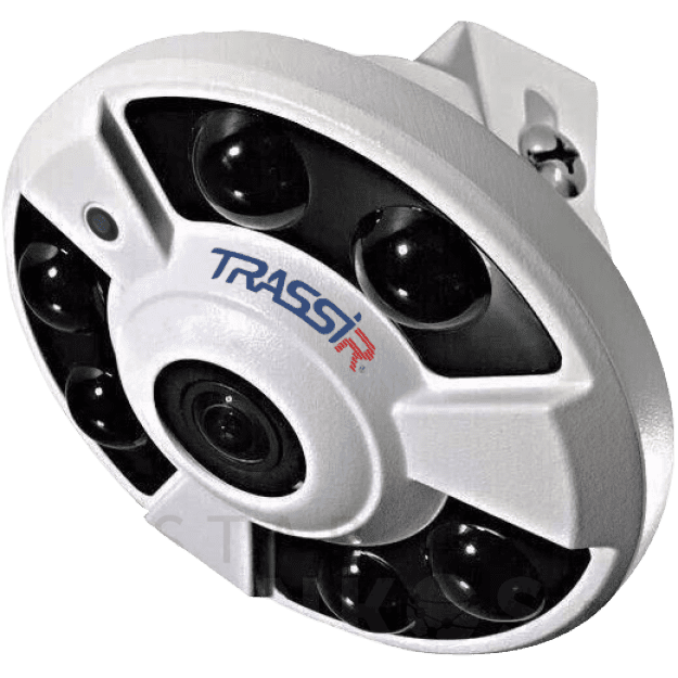 5 Мп (2592×1944) IP-камера TRASSIR TR-D9151IR2 укомплектована фишай-объективом с углом обзора по горизонтали и вертикали 180° — способна заменить несколько обычных обзорных камер. Для сжатия предназначены кодеки H.265+, H.265 и H.264, для ночного видеонаблюдения — ИК-подсветка дальностью действия 25 м. Благодаря высокопроизводительному процессору и сверхчувствительной (0.003 лк) 1/2.8-дюймовой CMOS-матрице TR-D9151IR2 дольше ведет цветную съемку, транслирует изображение с улучшенной цветопередачей и детализацией, потребляет меньше энергии. Функциональность Детекция движения (программный датчик). WDR 120 дБ — минимизация влияния разноконтрастного освещения на качество изображения. 3D DNR — пространственное шумоподавление. Поддержка съемки в вертикальном разрешении (режим коридора) с соотношением сторон 9:16. Defog — повышение контрастности для устранения последствий тумана или задымления сцены. ROI — функция фиксации на выделенной области и попутного снижения разрешения в незначительных частях кадра. BLC — компенсация засветки фона. HLC — маскировка локальной засветки. Режим день/ночь с ICR, при достаточном освещении преломляющим ИК-лучи (в темноте смещается для повышения чувствительности матрицы и работы подсветки). Основное Разрешение и скорость трансляции: 5 Мп — 15 fps. 4 Мп — 20 fps. 3 Мп — 25 fps. 2 Мп — 25 fps. 1.3 Мп— 25 fps. 1 Мп — 25 fps. TR-D9151IR2 оборудована сетевым портом RJ-45, слотом для microSD емкостью до 128 Гбайт, аудиовходом, аудиовыходом, встроенным микрофоном, разъемом питания. Питание — 12 В постоянного тока или PoE. Максимальная потребляемая мощность — 6.72 Вт. Размер — Ø120×58 мм. Вес — 380 г. Рабочие температуры — –30 °C… +60 °C, защита от влаги и пыли — IP65, грозозащита — TVS 4000 V. Видеообзор