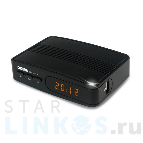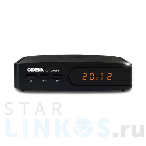 Цифровой эфирный приёмник CADENA CDT-1791SB со встроенным тюнером DVB-T2 предназначен для приёма открытых каналов эфирного вещания высокой четкости. Дальность и качество приёма зависит от места установки приёмной антенны, мощности передатчика, рельефа местности, времени года, уровня помех и других факторов.