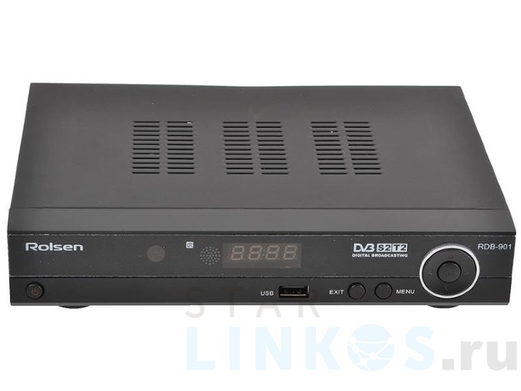 Ресивер, который принимает сигнал как в спутниковом формате DVB-S2 (MPEG4, Full HD) , так и в эфирном цифровом формате DVB-T2. Ресивер Rolsen RDB-901 оснащен USB портом, который позволяет записывать эфирные телепрограммы в цифровом качестве на внешние носители (функция PVR). Благодаря функции TimeShift можно после нажатия на «Паузу» в любой момент продолжить просмотр с того места, где он был прерван. Модель RDB-901 позволяет воспроизводить музыкальный и видеоконтент с внешних носителей (через USB порт), причем поддерживаются все основные форматы, включая MP3, AVI, DivX и MKV. Т акже в данной модели есть функция доступа к электронной программе передач (EPG) и автоматическая синхронизация времени. Модель оснащена радиоприемником.
