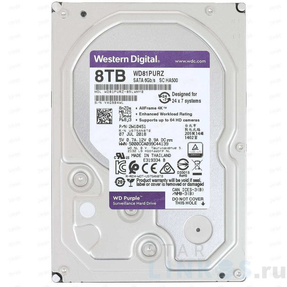 Жесткий диск — 8 Тбайт, SATA 6 Гбит/с, поддержка до 16 дисковых отсеков, запись с 64 камер, кэш-память 256 Мбайт, 7200 об/мин, режим 24/7, 360 Тбайт/год, 8.6 Вт, 0 °C… +65 °C.