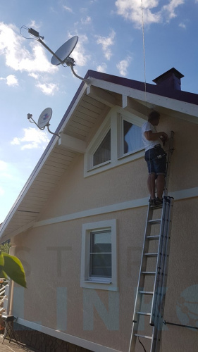 - Стандартный монтаж спутниковой антенны в легкодоступном месте, наведение антенны на спутник.